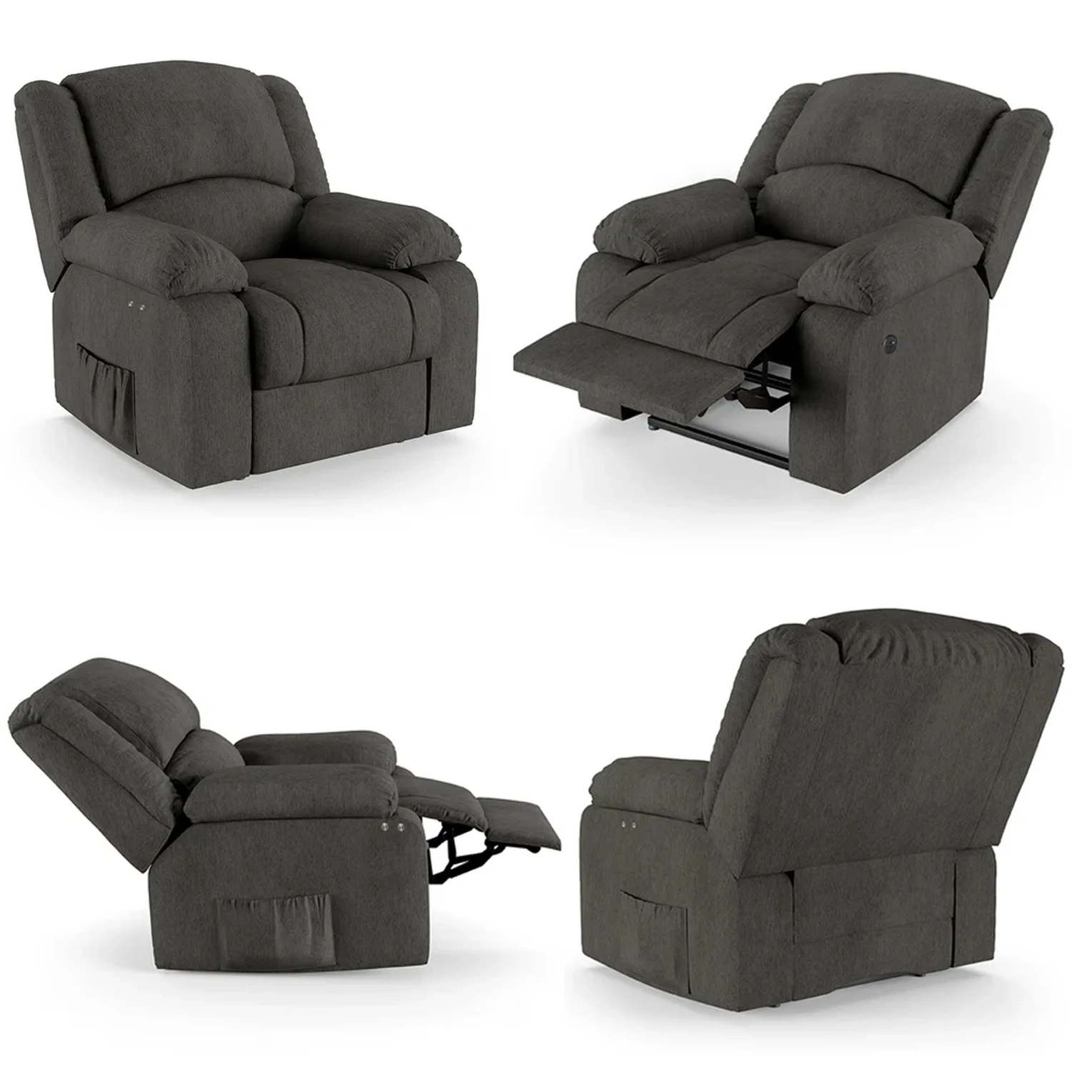 Com um design que alia modernidade e elegância, a Poltrona Reclinável é a escolha perfeita para aqueles que não abrem mão do conforto supremo. Seja mergulhando nas páginas de uma revista, um bom livro que pode ficar no bolso lateral ou se deliciando com seus filmes e séries prediletos, esta Poltrona Do Papai promete ser o seu refúgio particular. A facilidade de ajuste com o botão elétrico permite que você encontre a posição perfeita com o toque suave de um botão touch. Ah! E ela ainda conta com entrada USB e tipo C ideal para carregar seus eletrônicos enquanto descansa, tudo pensado para proporcionar uma experiência imersiva sem igual. E não é só sobre conforto, mas também sobre durabilidade e estilo, como a madeira maciça de eucalipto e o revestimento de alta qualidade. As dimensões generosas garantem que você tenha espaço de sobra para relaxar, enquanto a capacidade de suportar até 130kg assegura que é uma peça robusta e confiável. Não é apenas uma poltrona, é um upgrade na sua qualidade de vida, trazendo o glamour do cinema diretamente para o seu lar.