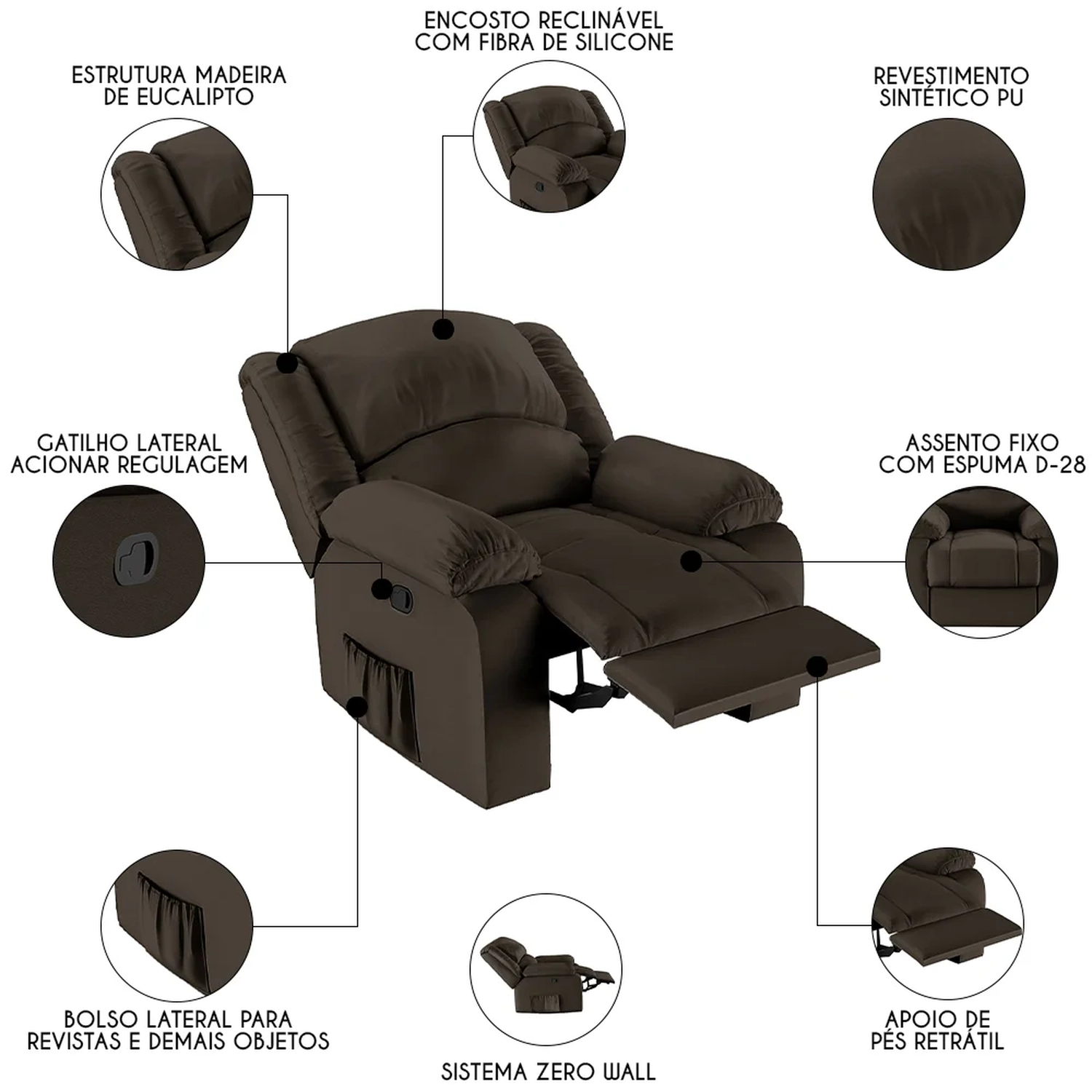 - Encosto reclinável, sistema Zero Wall.