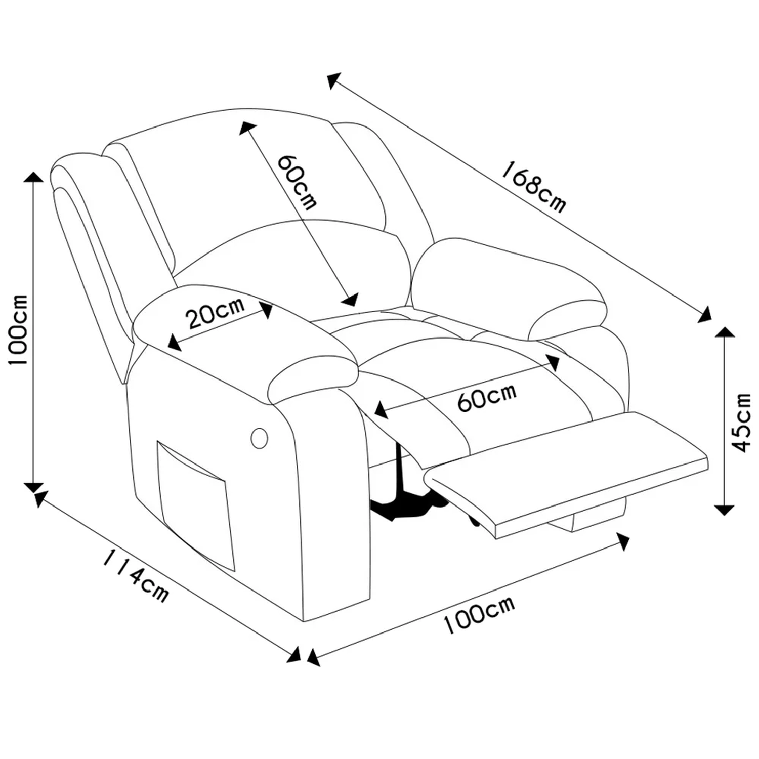 Largura do encosto: 60 cm.