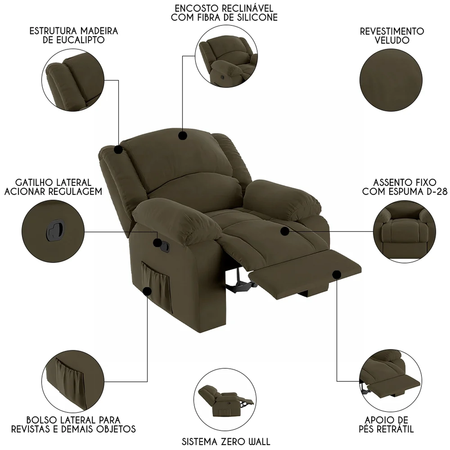 - Encosto reclinável, sistema Zero Wall.