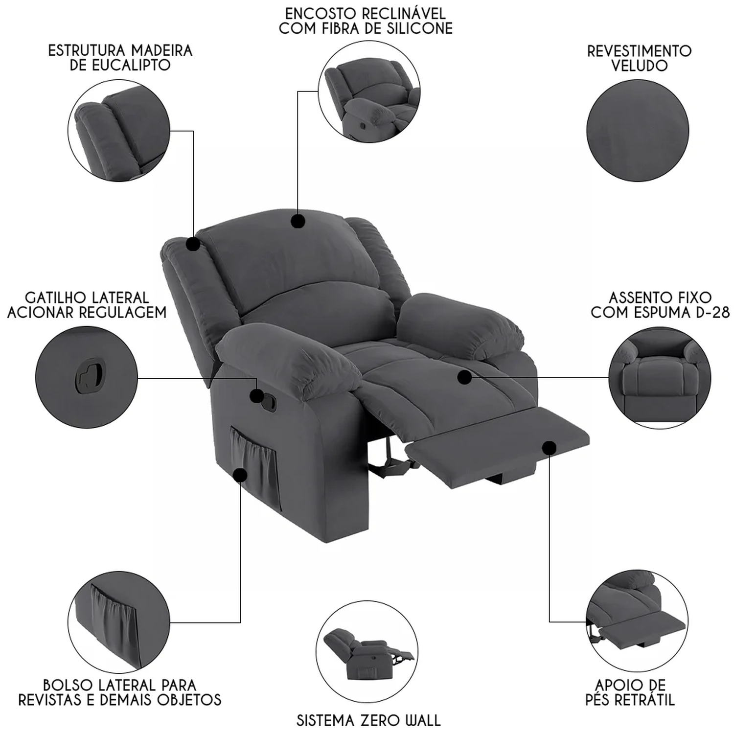 - Encosto reclinável, sistema Zero Wall.