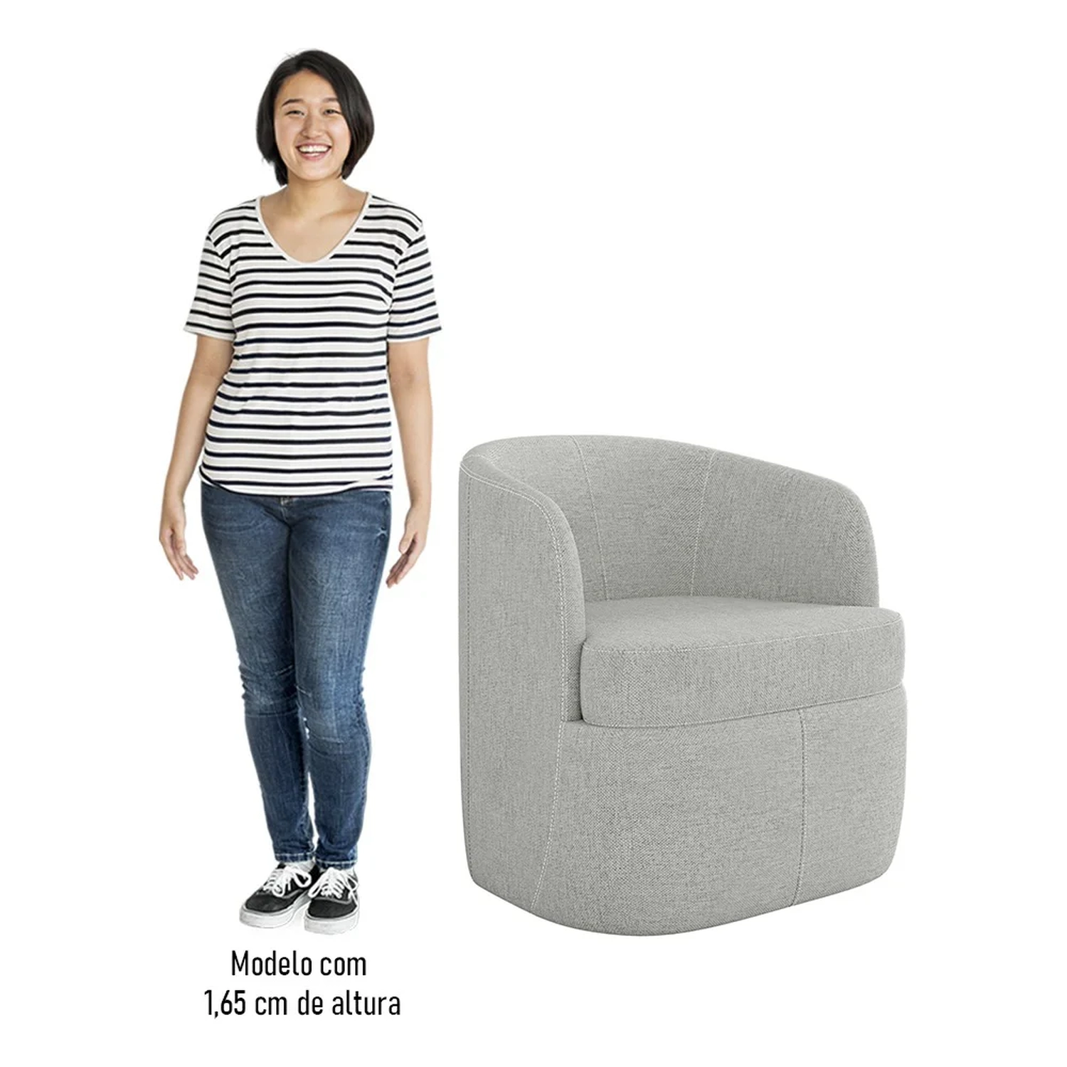 Sinônimo de elegância e bom-gosto, a Poltrona Giratória Decorativa para Sala Dandara Z08 Linho Cinza, da Mpozenato, vai elevar o estilo decorativo da sua sala de estar ou living.