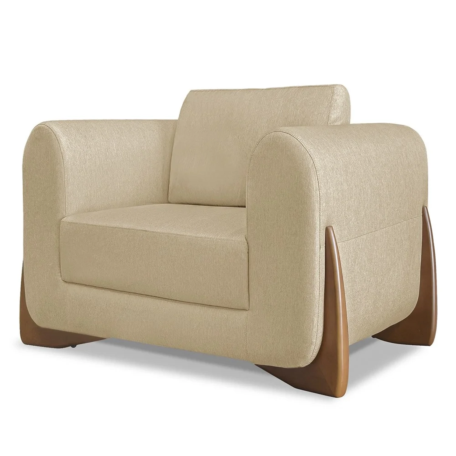 A Poltrona para Sala Base de Madeira Izzy S06 Linho Dourado, da Mpozenato é uma expressão de conforto e elegância, projetada para ser mais do que um simples assento.