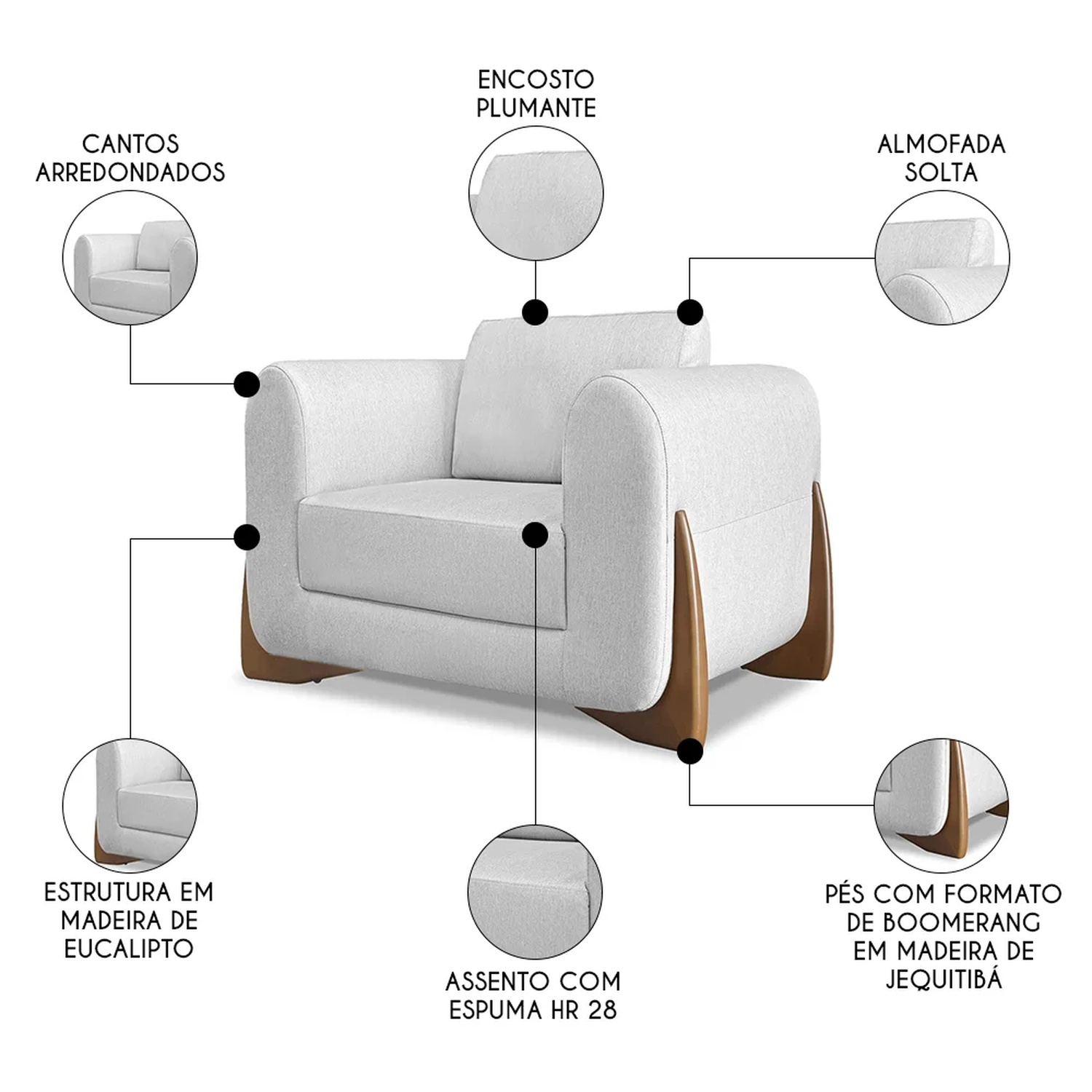 - Encosto em almofada solta.