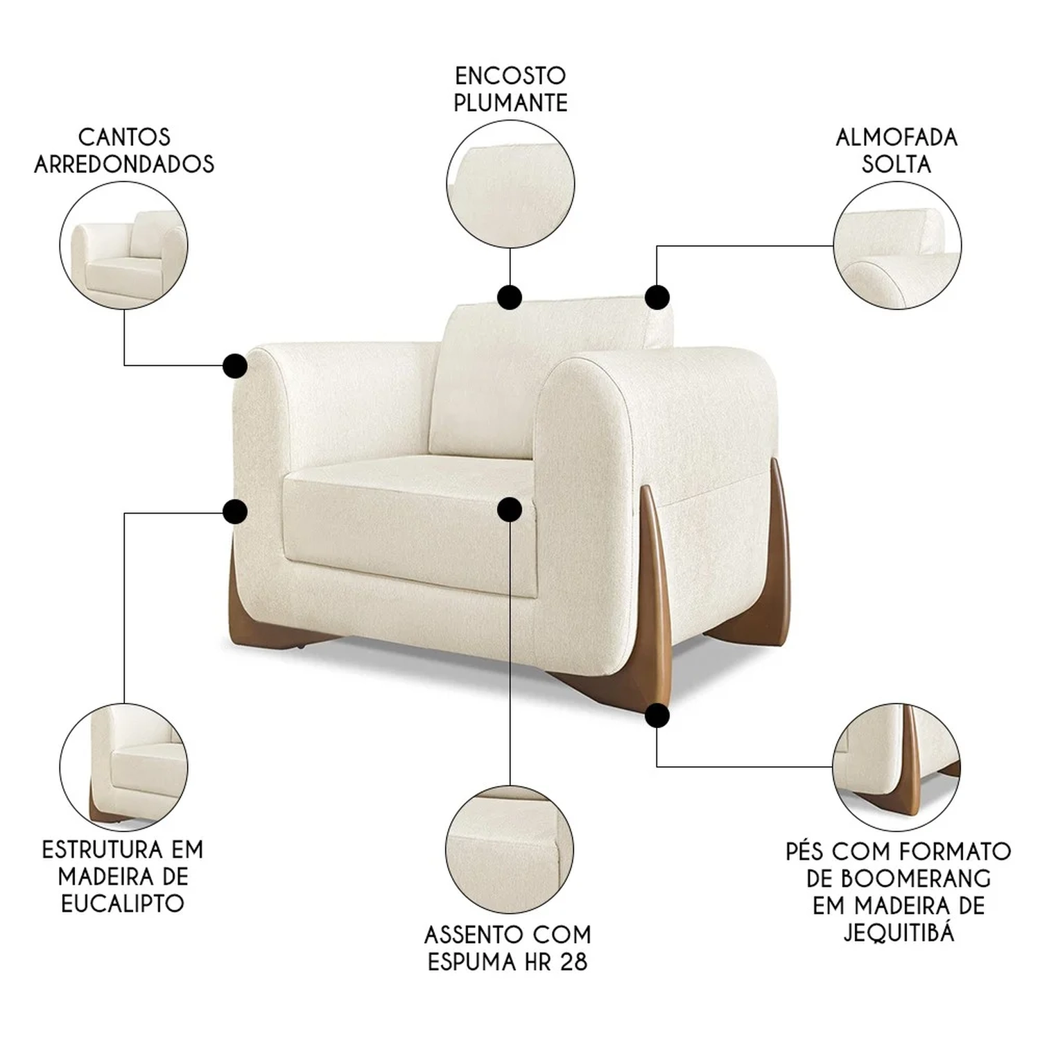 - Encosto em almofada solta.