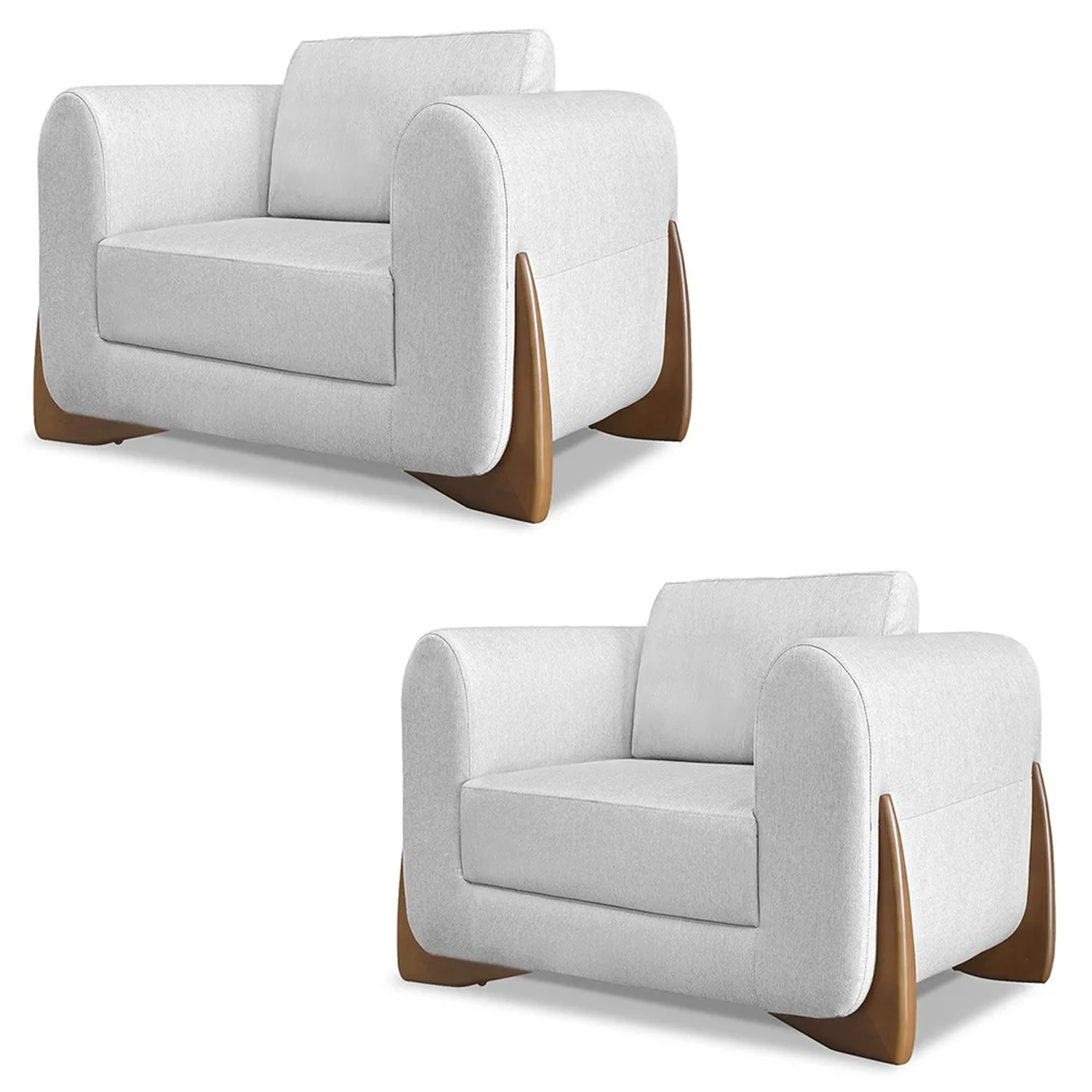 O kit de Poltrona para Sala é revestido em linho de alta qualidade, proporcionando uma textura agradável ao toque. Os pés da poltrona são um destaque à parte, com acabamento em madeira de jequitibá, conhecida por sua durabilidade e beleza natural. A estrutura é feita de madeira maciça de eucalipto, garantindo resistência e durabilidade. O assento é equipado com espuma de alta resiliência HR28, complementada por plumante em silicone, oferecendo um equilíbrio perfeito entre suporte e maciez. O design dos pés em formato boomerang, com 8 cm de altura na cor mel, adiciona um toque retro-moderno à peça. Esse kit de Poltrona Decorativa é a decoração que reflete sofisticação e um padrão de acabamento de alto nível para a sua Sala de Estar.