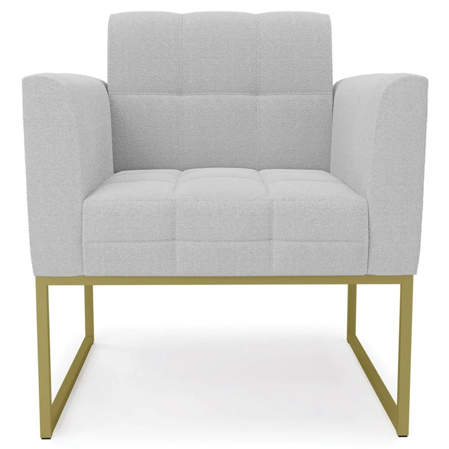 Você está procurando uma poltrona que combine com a sua Sala De Estar, recepção ou seu quarto, que ofereça conforto e qualidade? Então você vai adorar a Poltrona Para Sala Base Industrial Dourado Ana Boucle Cinza, da Ibiza!