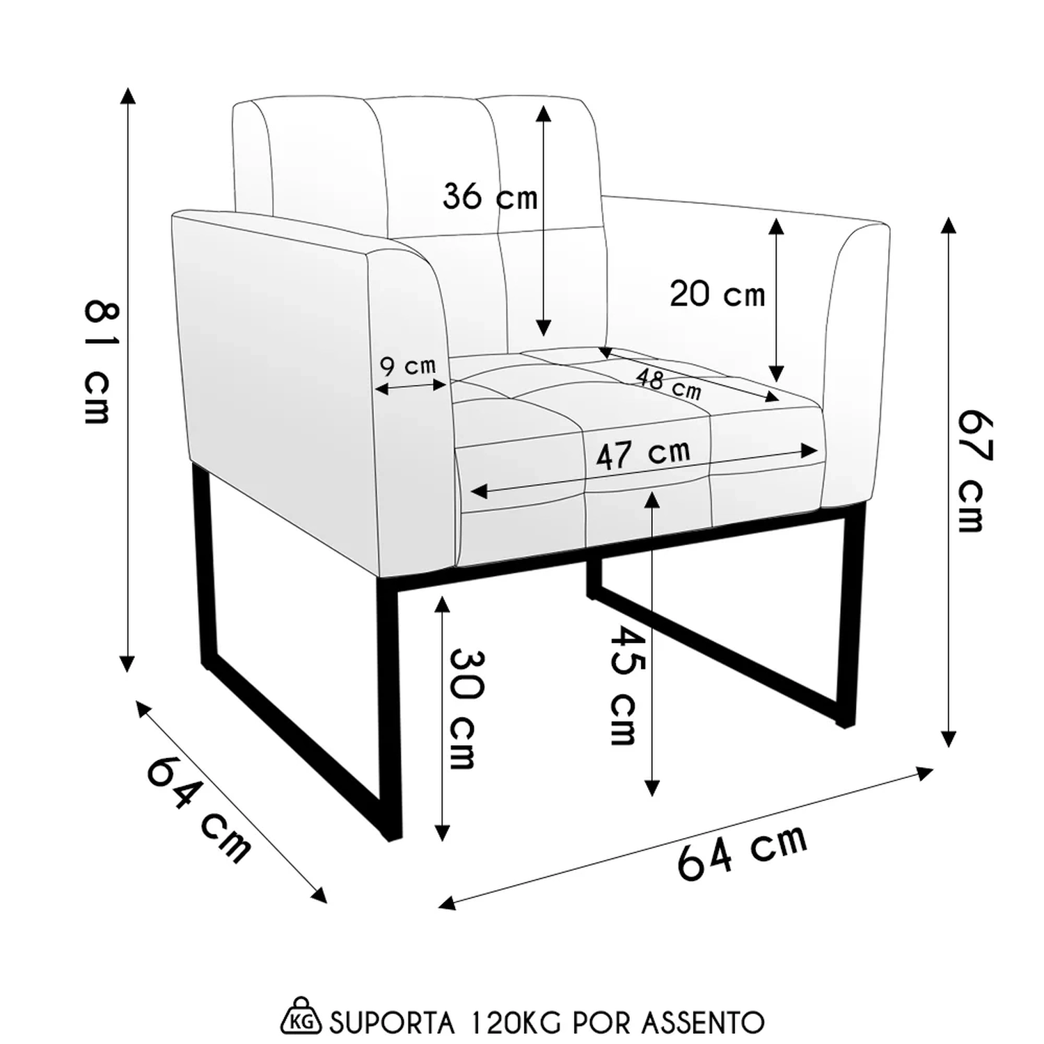 Profundidade do assento: 48 cm.