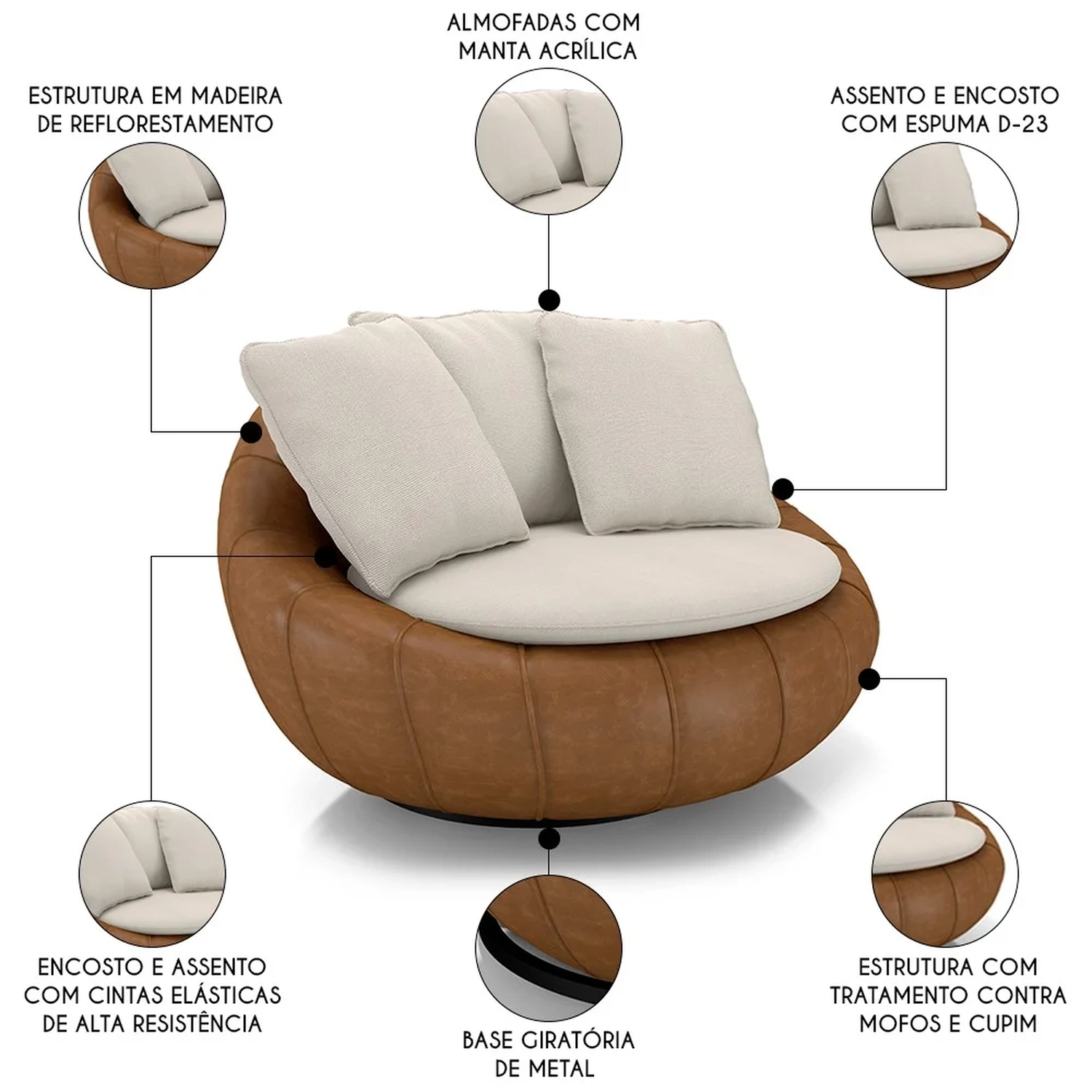 Com design contemporâneo, visando o conforto e a estética, a Poltrona Decorativa Redonda Giratória Saphire Z32 Linho Bege/Caramelo, da Mpozenato vai compor os mais diversos ambientes, desde uma Sala De Estar, a um quarto ou lounge.