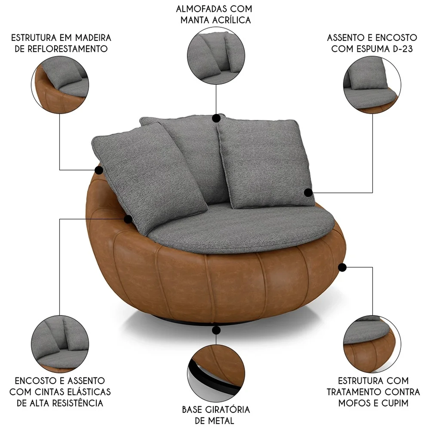 Com design contemporâneo, visando o conforto e a estética, a Poltrona Decorativa Redonda Giratória Saphire Z32 Linho Cinza/Caramelo, da Mpozenato vai compor os mais diversos ambientes, desde uma Sala De Estar, a um quarto ou lounge.