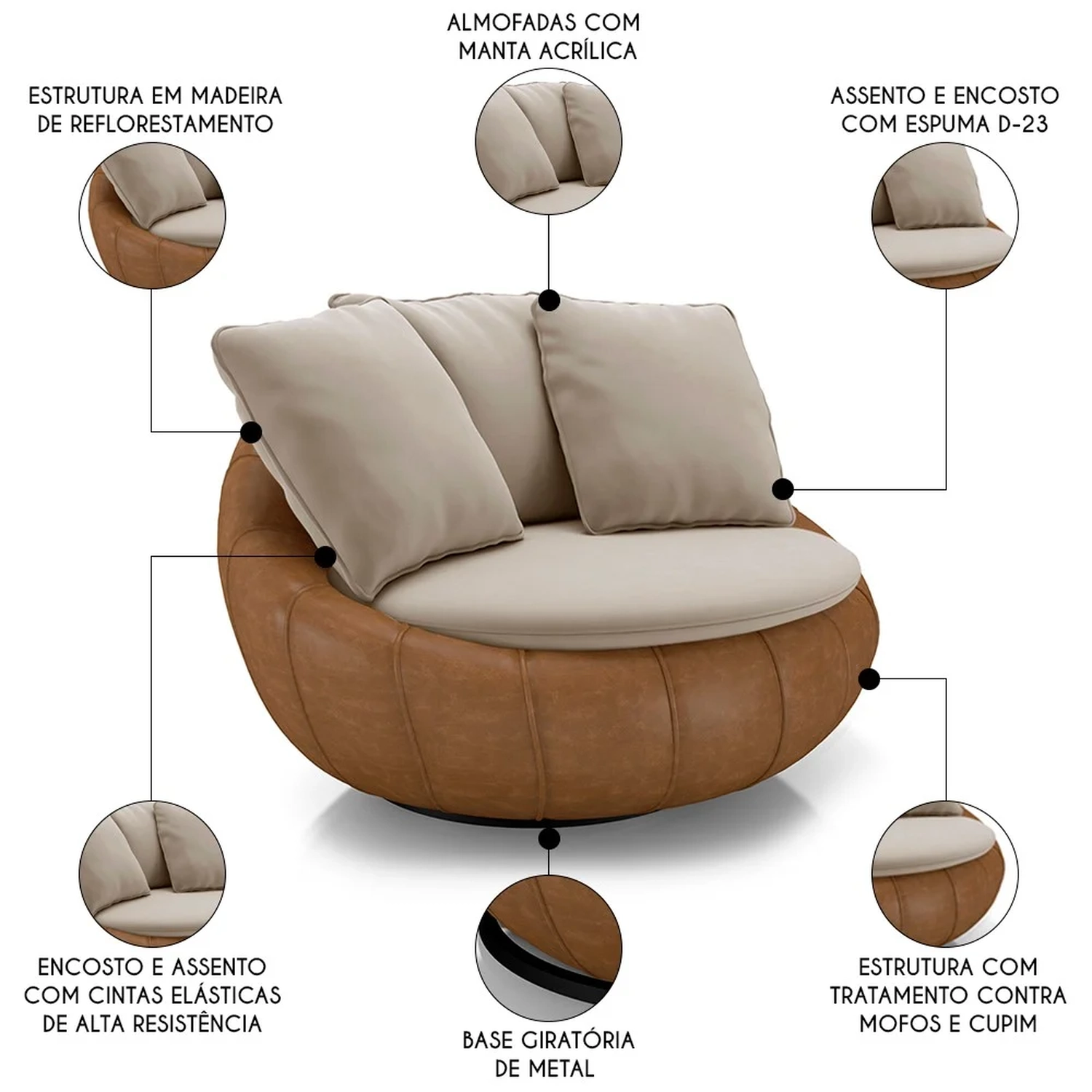 Com design contemporâneo, visando o conforto e a estética, a Poltrona Decorativa Redonda Giratória Saphire Z32 Veludo Bege/Caramelo, da Mpozenato vai compor os mais diversos ambientes, desde uma Sala De Estar, a um quarto ou lounge.