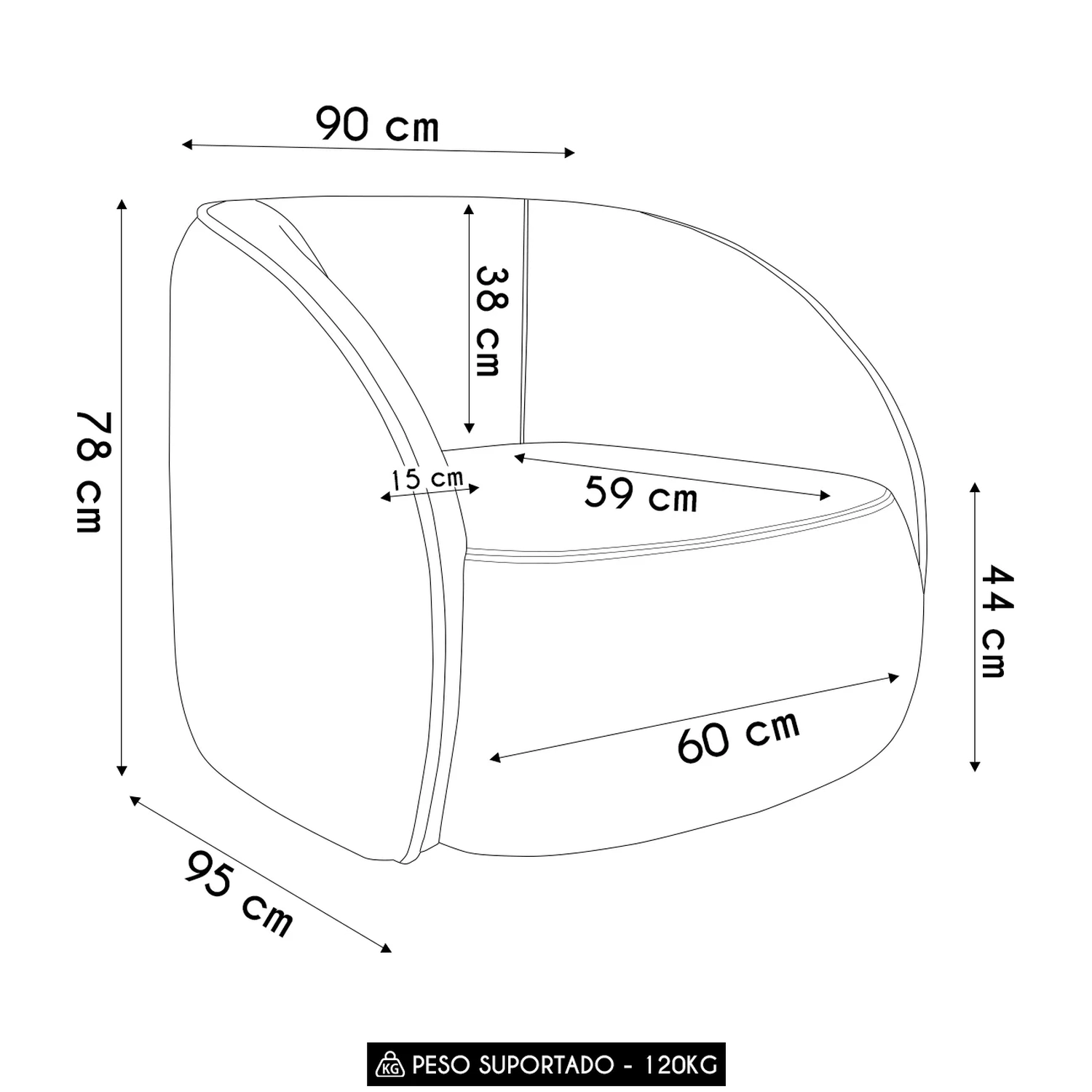 Altura do chão ao Assento: 44 cm.