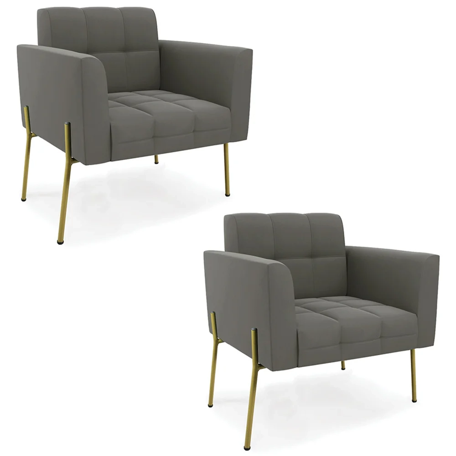 Procurando um Kit Poltrona que combine com a sua Sala De Estar, recepção ou seu quarto, que ofereça conforto e qualidade? Então você vai adorar a Poltrona Para Sala Pé Metal Dourado Kit 2 Ana Suede Grafite, da Ibiza!