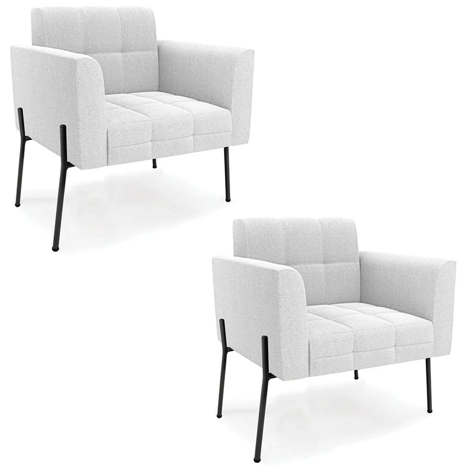 Você está procurando um Kit Poltrona que combine com a sua Sala De Estar, recepção ou seu quarto, que ofereça conforto e qualidade? Então você vai adorar a Poltrona Para Sala Pé Metal Preto Kit 2 Ana Boucle Off White, da Ibiza!