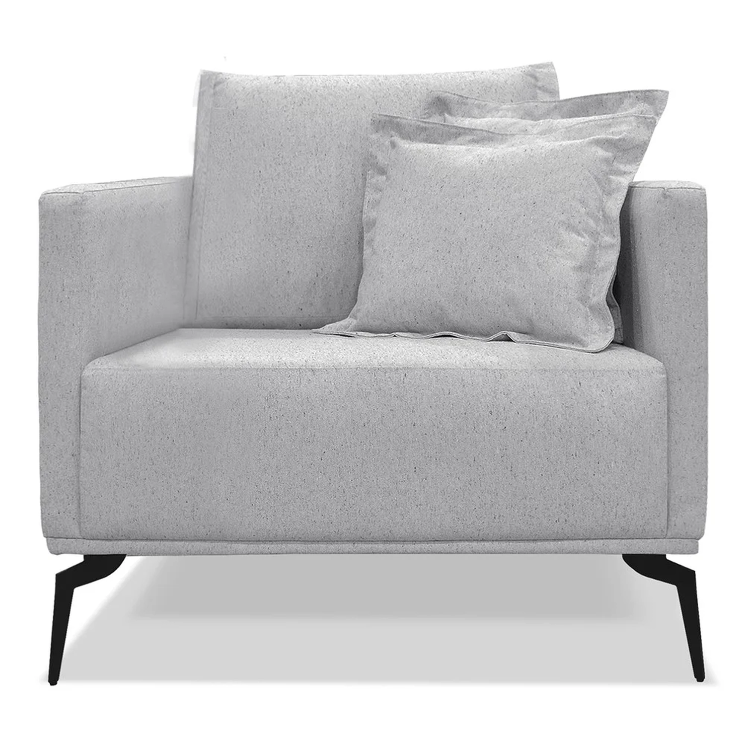 A Poltrona Decorativa tem os pés de aço e acabamento elegante na cor preta, ela oferece não apenas estabilidade, mas também um toque de sofisticação ao ambiente assim como o seu revestimento em linho. O assento, feito com espuma HR28 e plumante de silicone, promete ser o refúgio perfeito após um longo dia, enquanto as duas almofadas decorativas complementam o visual com um charme adicional. A durabilidade é assegurada pela estrutura de madeira maciça de eucalipto, e o encosto em almofada solta com fibra de silicone se adapta perfeitamente ao corpo, proporcionando uma experiência de relaxamento inigualável. Esta Poltrona Para Sala não é apenas um móvel, mas um investimento em bem-estar e estilo para a sua Sala de Estar.
