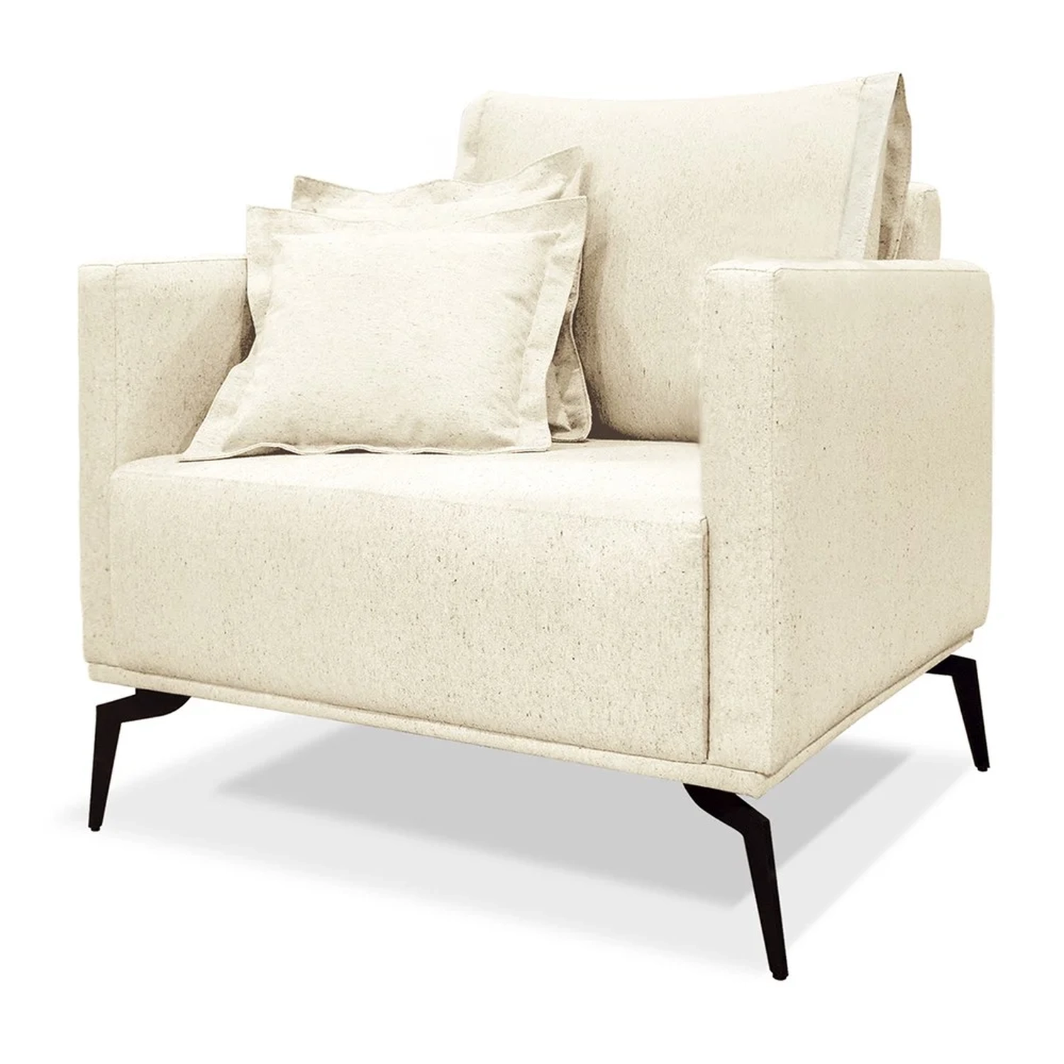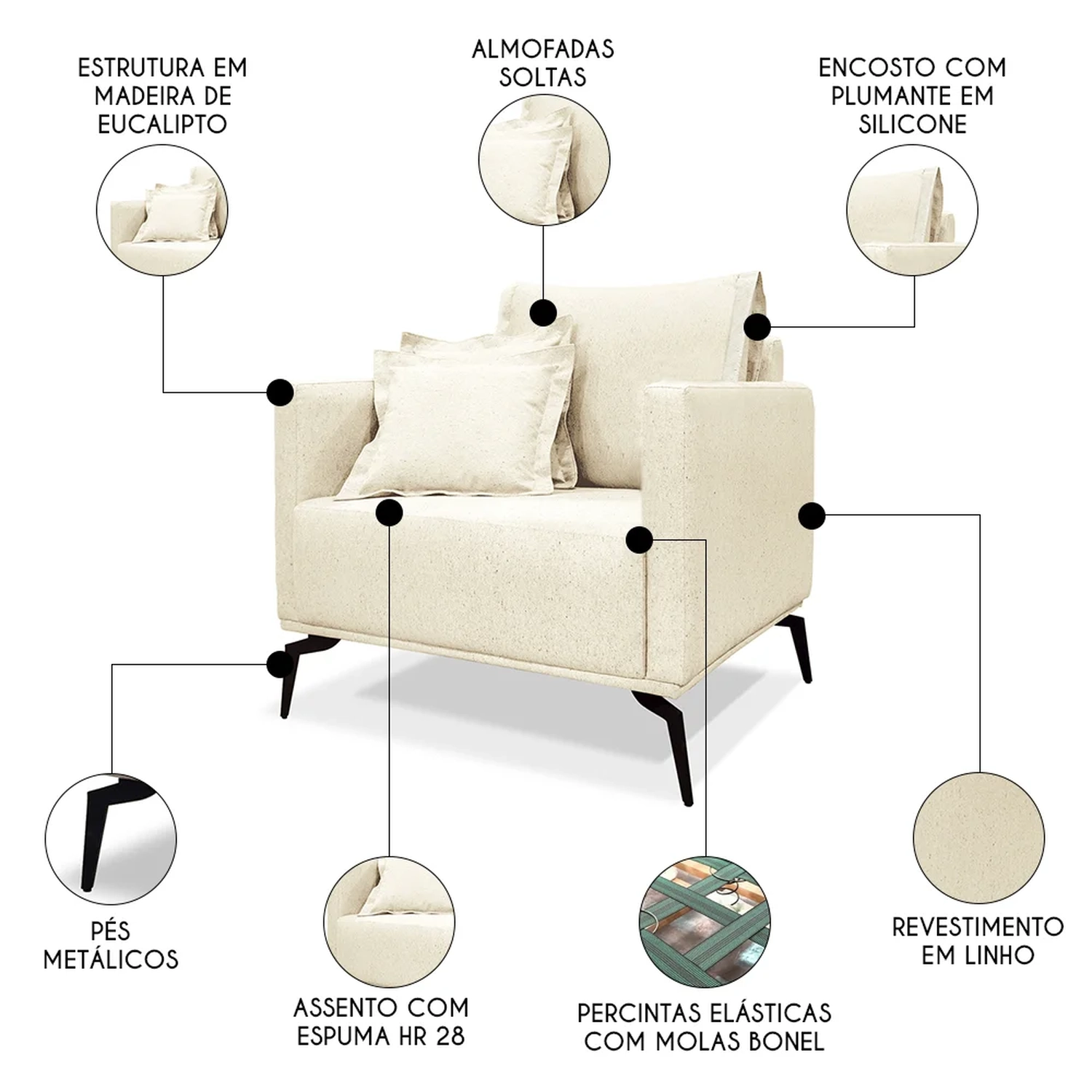 A Poltrona para Sala Pés de Metal Vecchia S06 Linho Pérola, da Mpozenato é uma escolha excelente para quem busca um móvel que alia conforto e design contemporâneo.