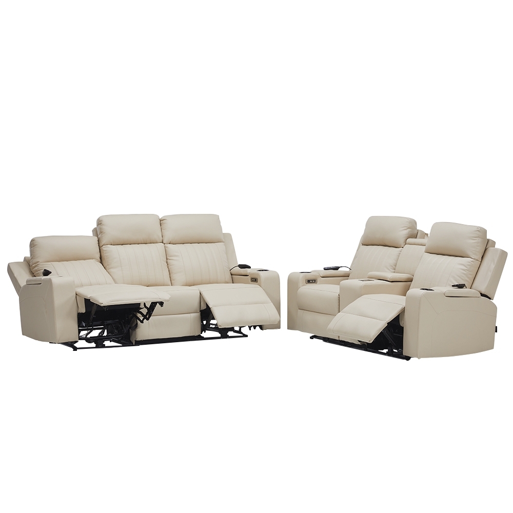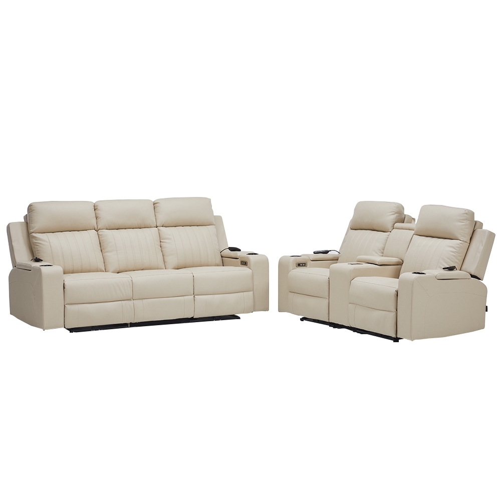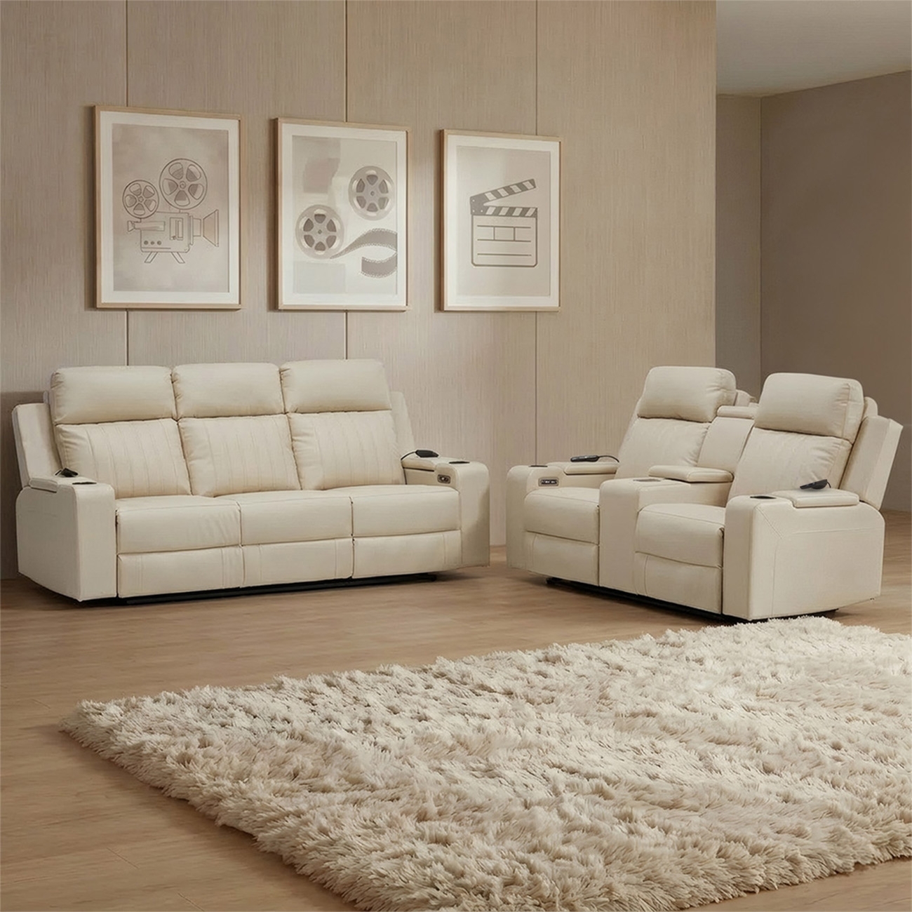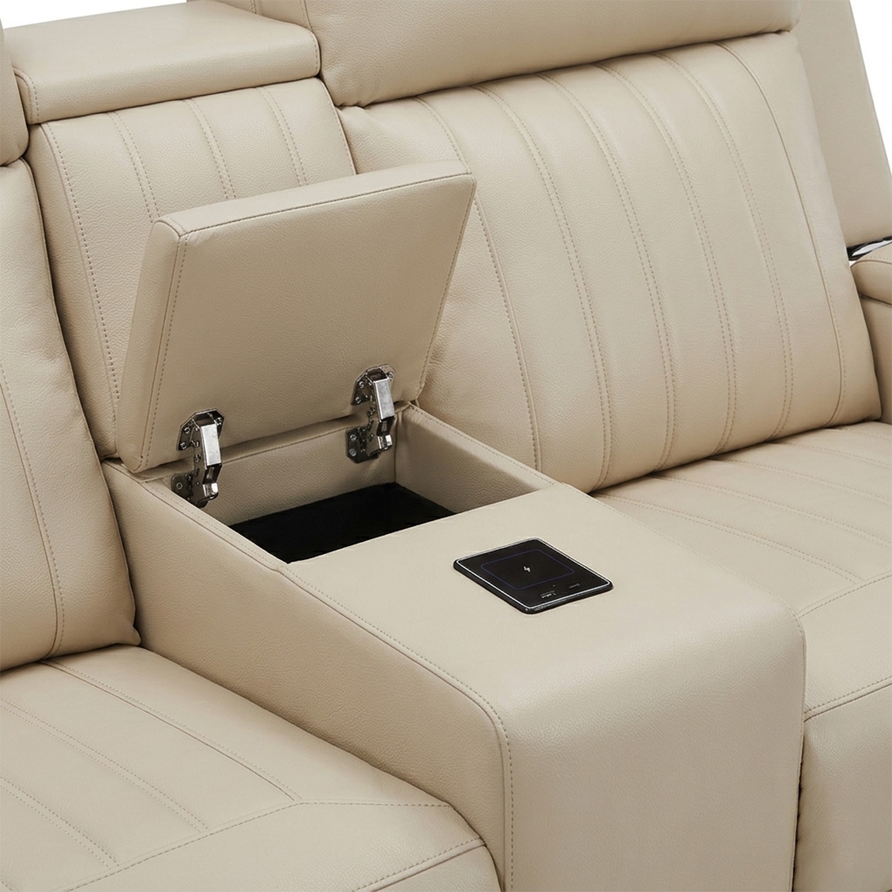 Poltrona Reclinável Cinema 2 e 3 Lugares Baú USB PU Moscou Sintético Bege Z57 - Mpozenato