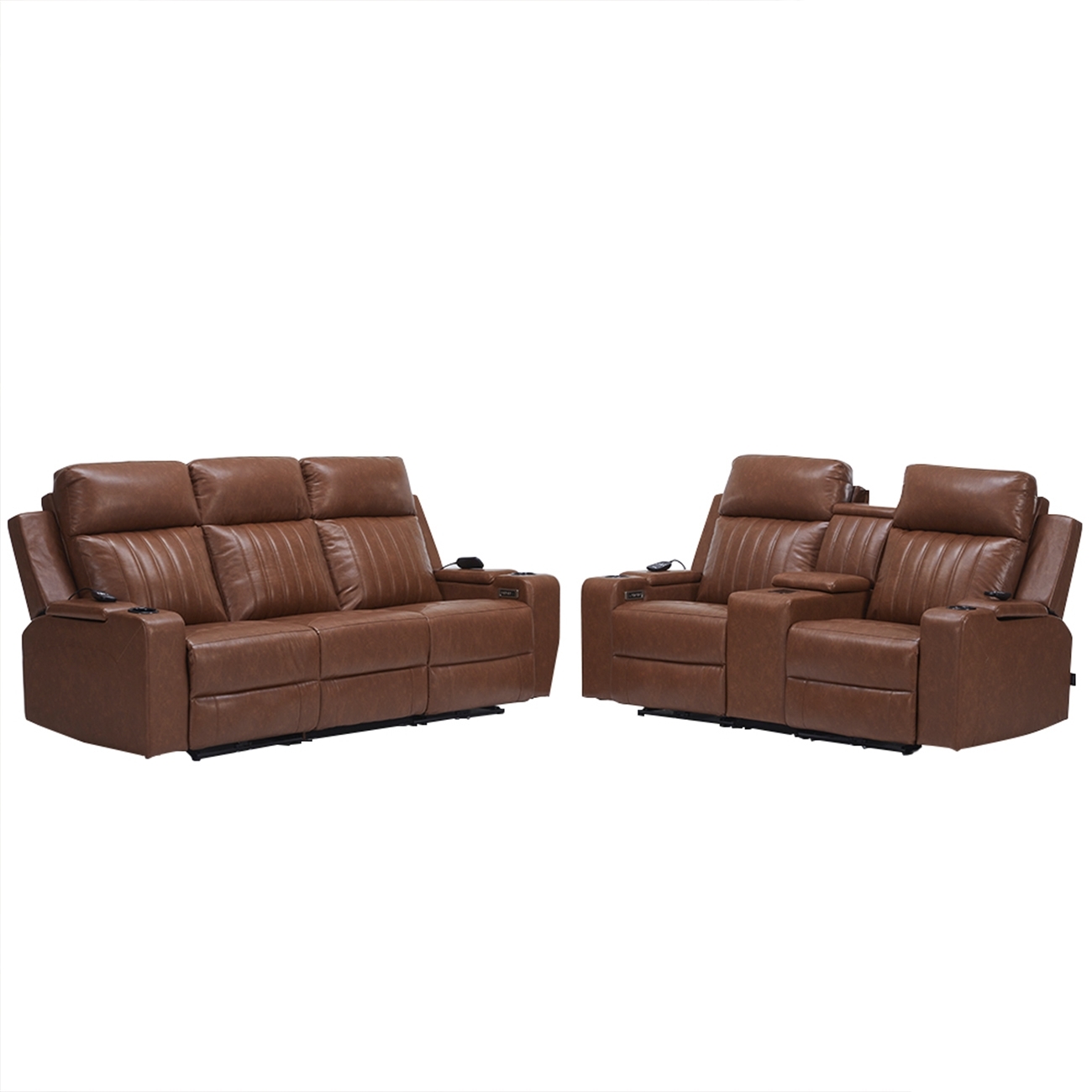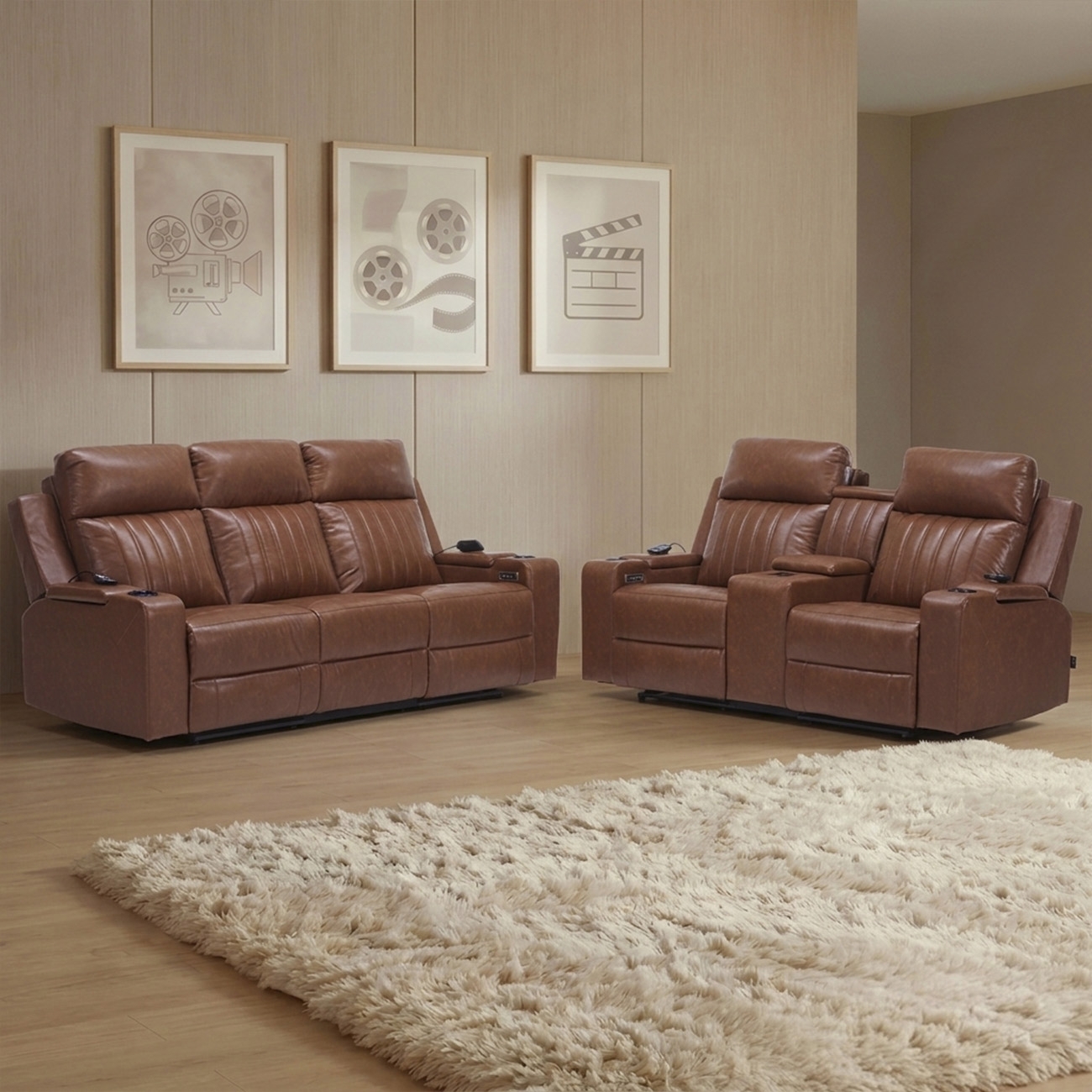 Poltrona Reclinável Cinema 2 e 3 Lugares Baú USB PU Moscou Sintético Camel Z57 - Mpozenato