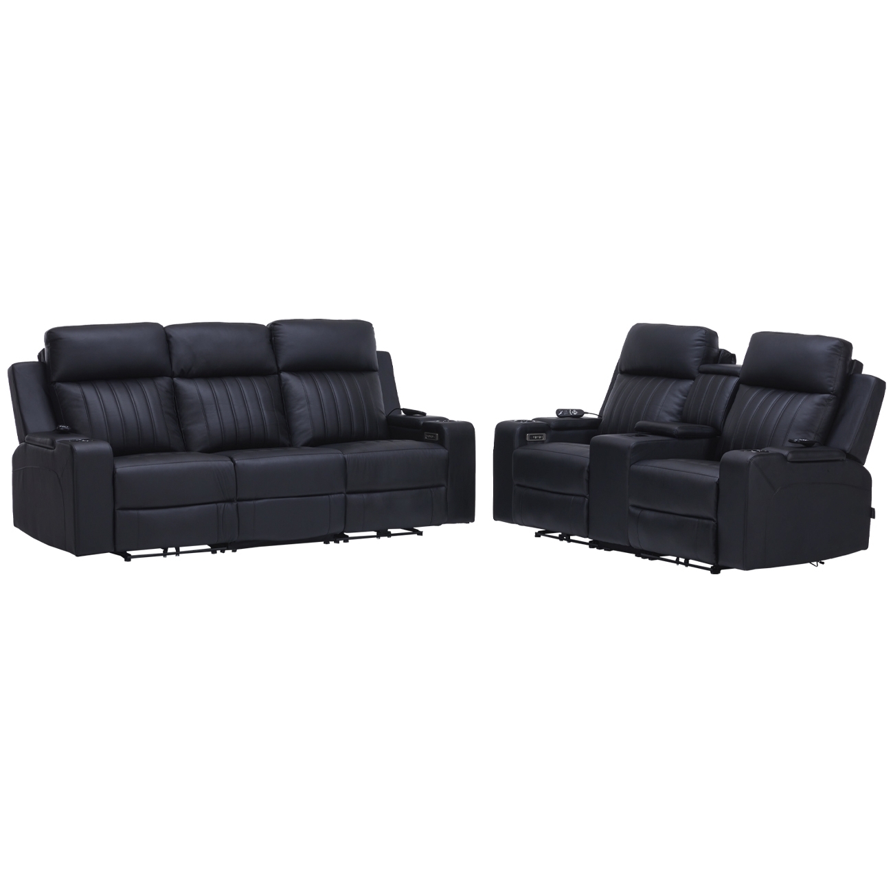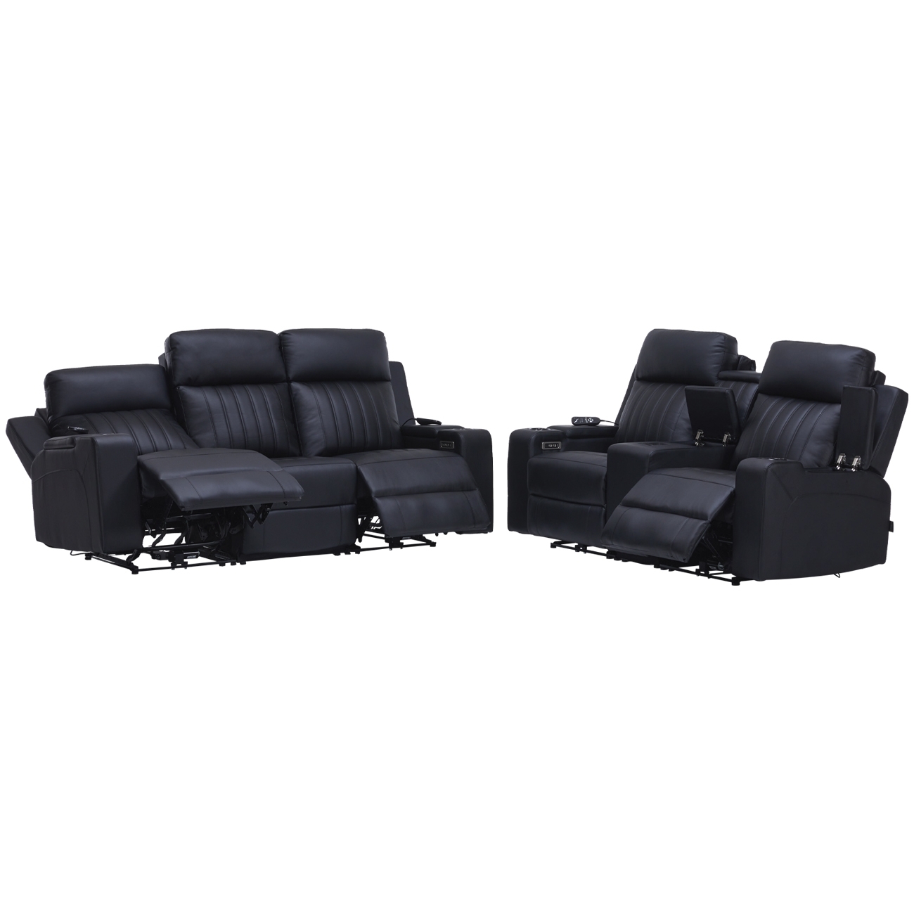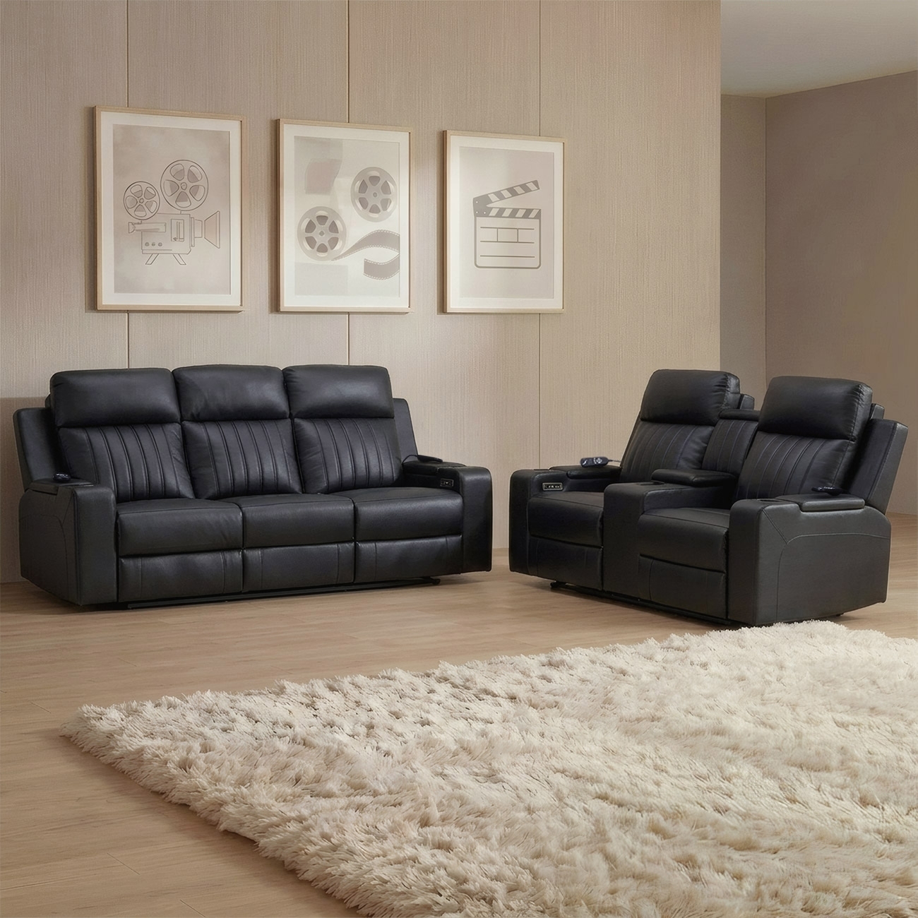 Poltrona Reclinável Cinema 2 e 3 Lugares Baú USB PU Moscou Sintético Preto Z57 - Mpozenato