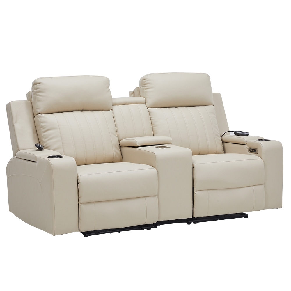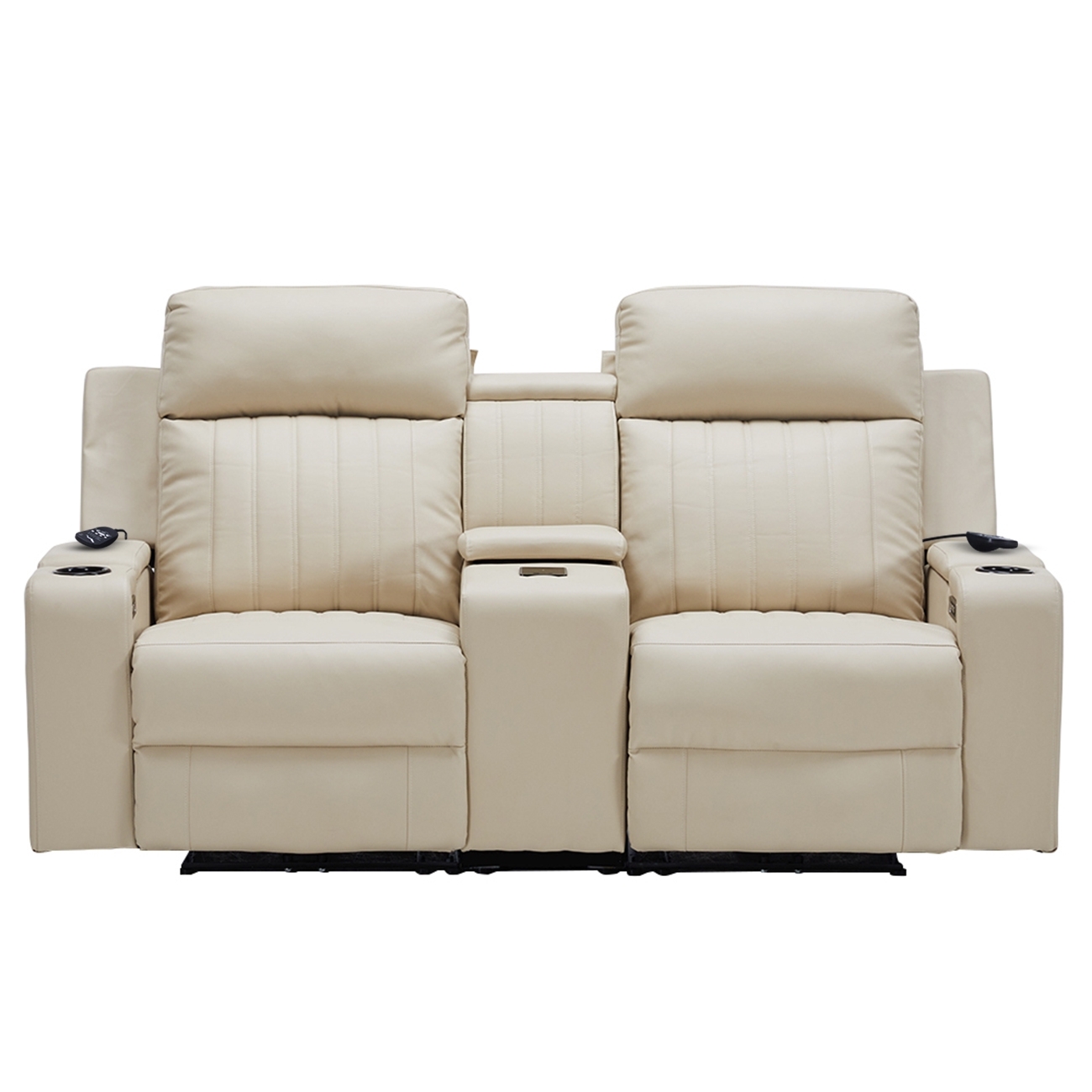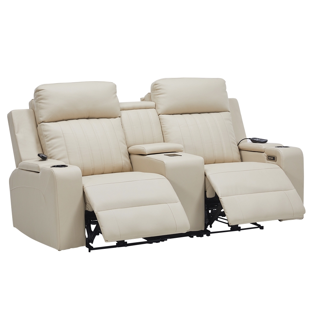 Poltrona Reclinável Cinema 2 Lugares Baú USB PU Moscou Sintético Bege Z57 - Mpozenato