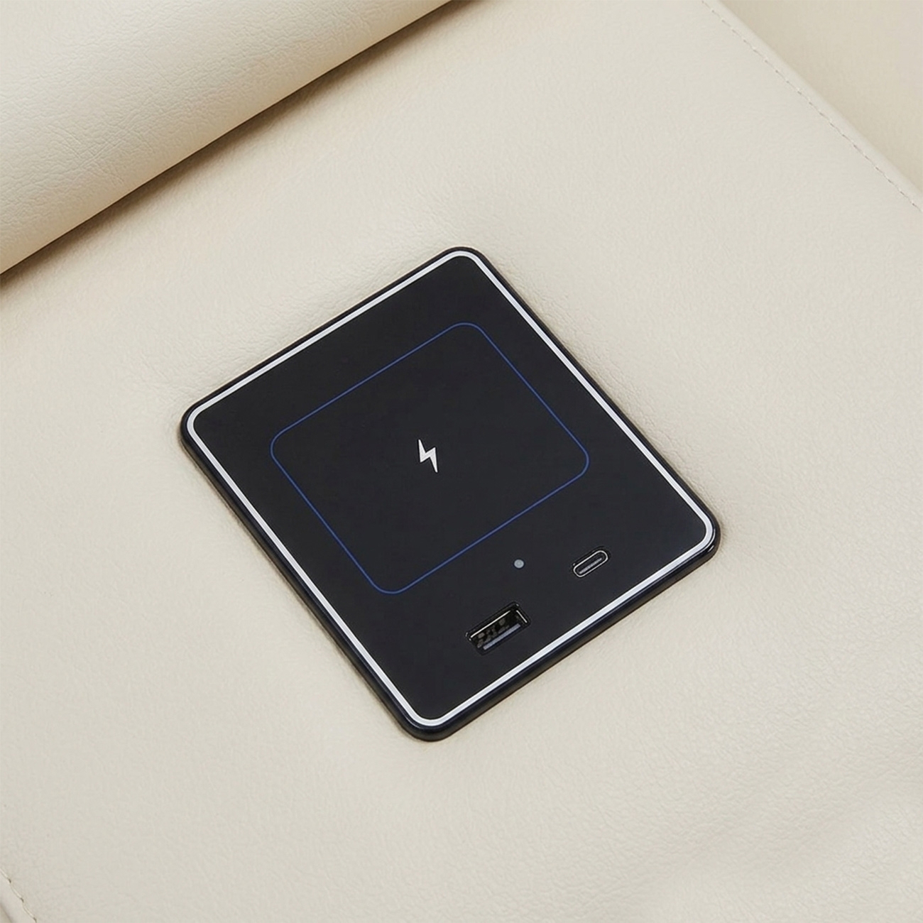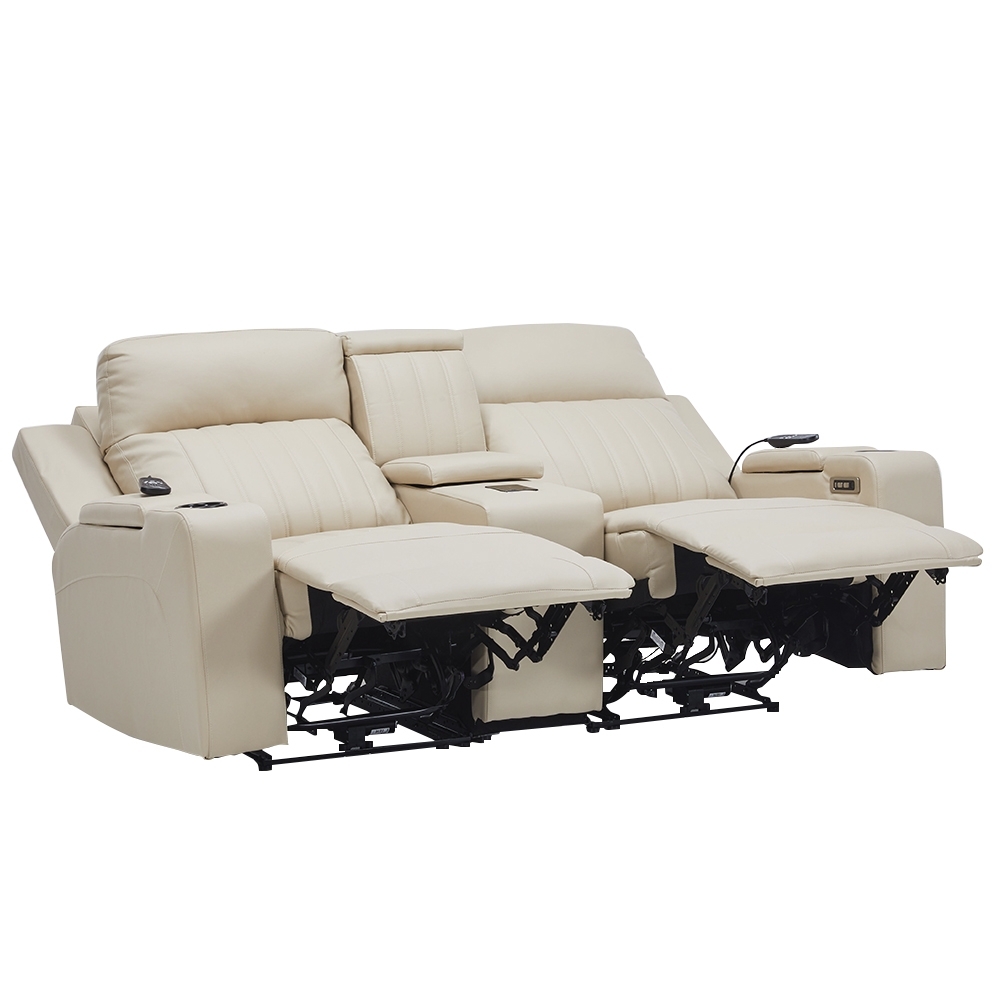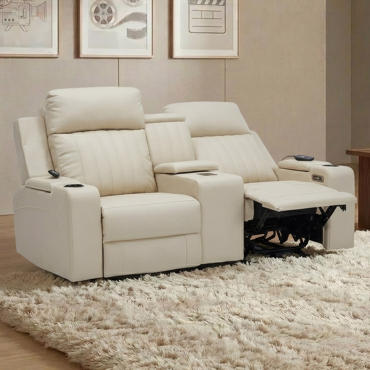 Poltrona Reclinável Cinema 2 Lugares Baú USB PU Moscou Sintético Bege Z57 - Mpozenato