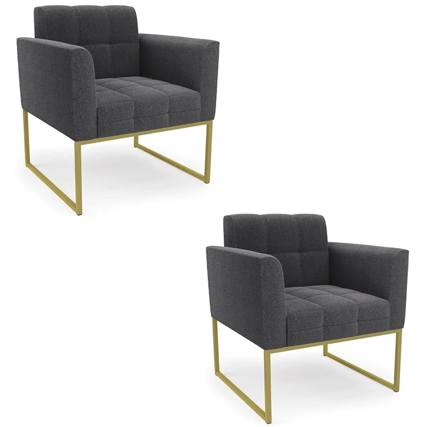 Você está procurando um Kit Poltrona que combine com a sua Sala De Estar, recepção ou seu quarto, que ofereça conforto e qualidade? Então você vai adorar a Poltrona Sala Base Industrial Dourado Kit 2 Ana Boucle Grafite, da Ibiza!