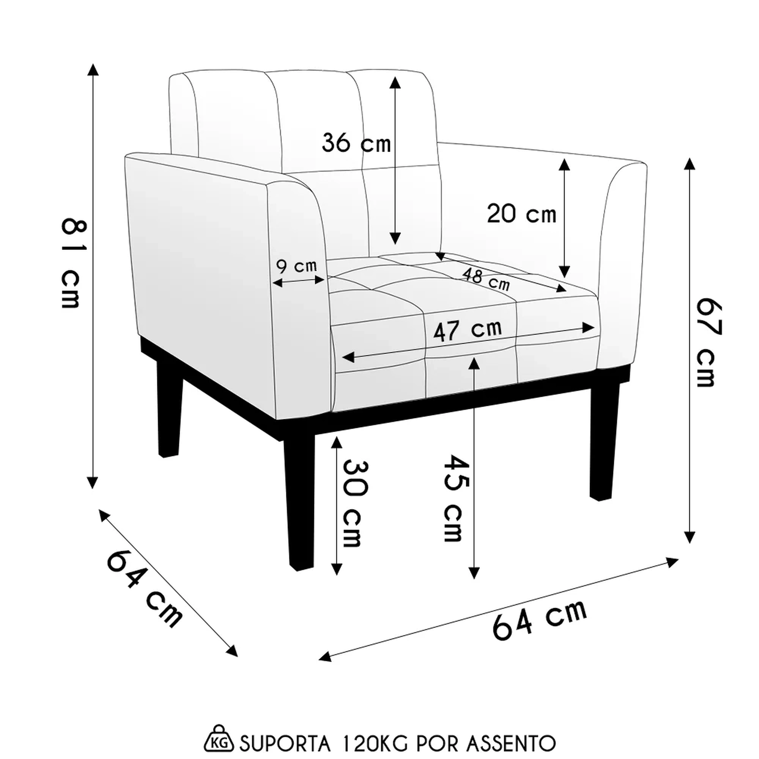 Profundidade do assento: 48 cm.