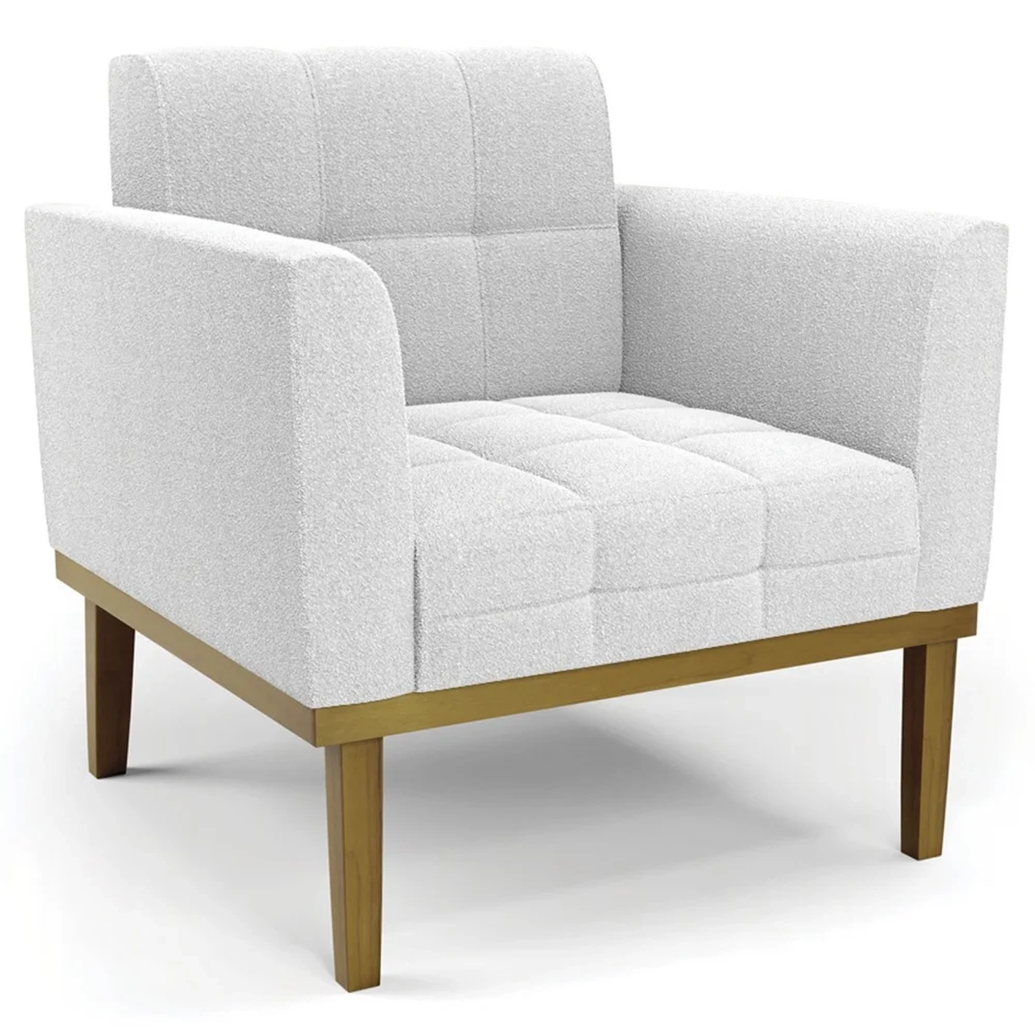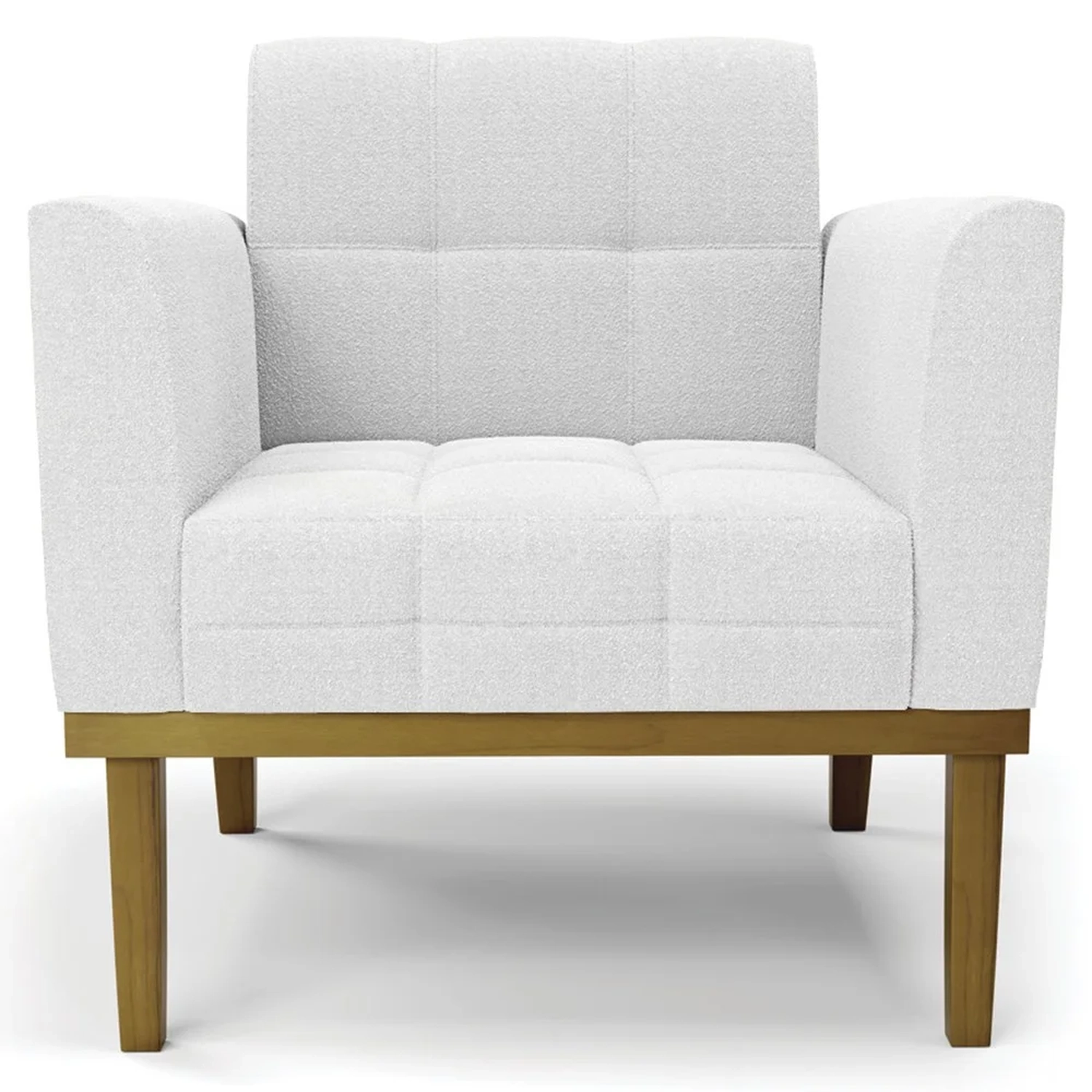 A Poltrona Para Sala é revestida em Boucle, que é confortável, suave ao toque, e ainda valoriza o design da poltrona. Os braços e encosto são confortáveis em espuma D-18, já o assento é com espuma D-26 de alta densidade, que garante um assento firme e aconchegante, ideal para relaxar após um dia cansativo. A base em madeira de eucalipto é um charme à parte, que confere um toque Rústico e sofisticado à peça. São 2 poltronas com estrutura resistente que suporta até 120 kg cada. A montagem é muito simples, pois a poltrona já vem pronta, bastando apenas fixar a base com os parafusos que acompanham o produto. A limpeza também é muito prática, pois basta utilizar um pano limpo e levemente úmido, sem produtos abrasivos, para manter a sua poltrona sempre em bom estado. Sem dúvidas a Poltrona Para Sala vai transformar seu ambiente, deixando mais confortável e estiloso!