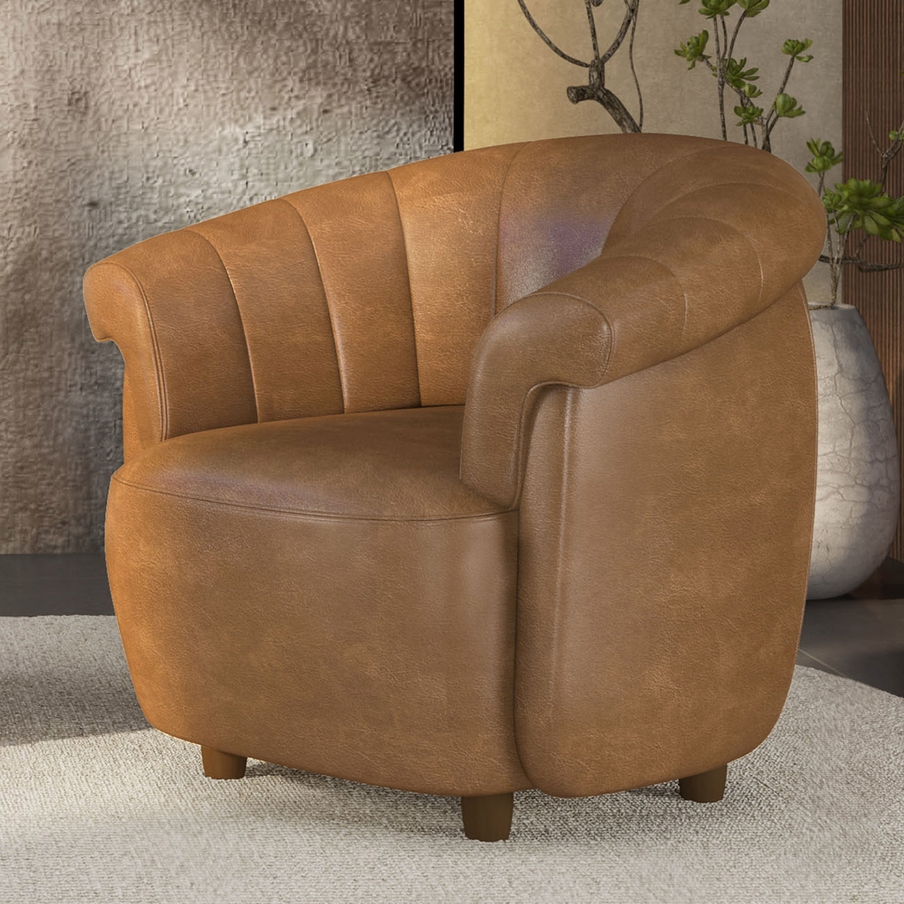 Poltrona Sala de Estar Pé Madeira Lykan Sintético Caramelo Z32 - Mpozenato