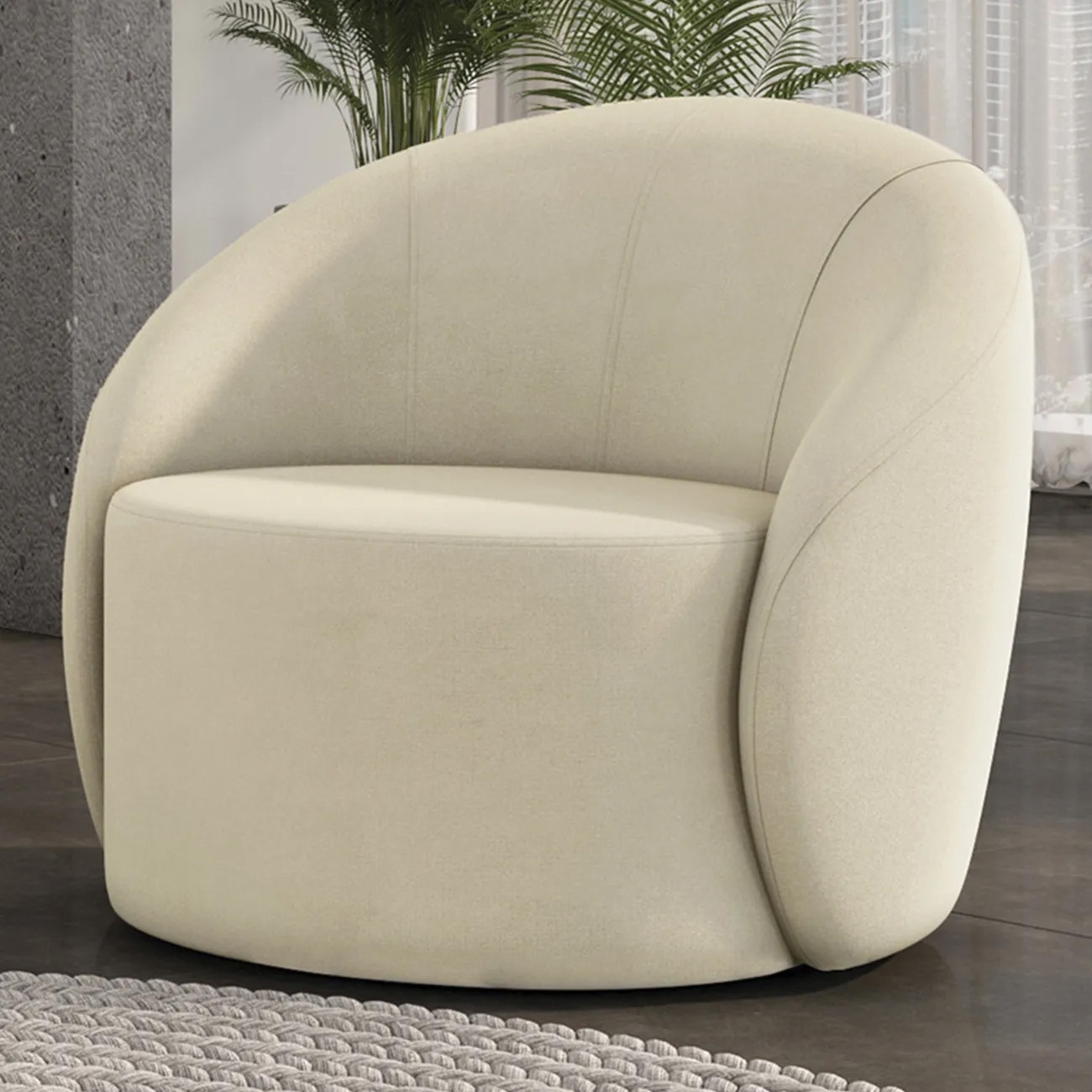 Poltrona Sala Decorativa Redonda 91cm Steve Suede Bege I01 - Mpozenato