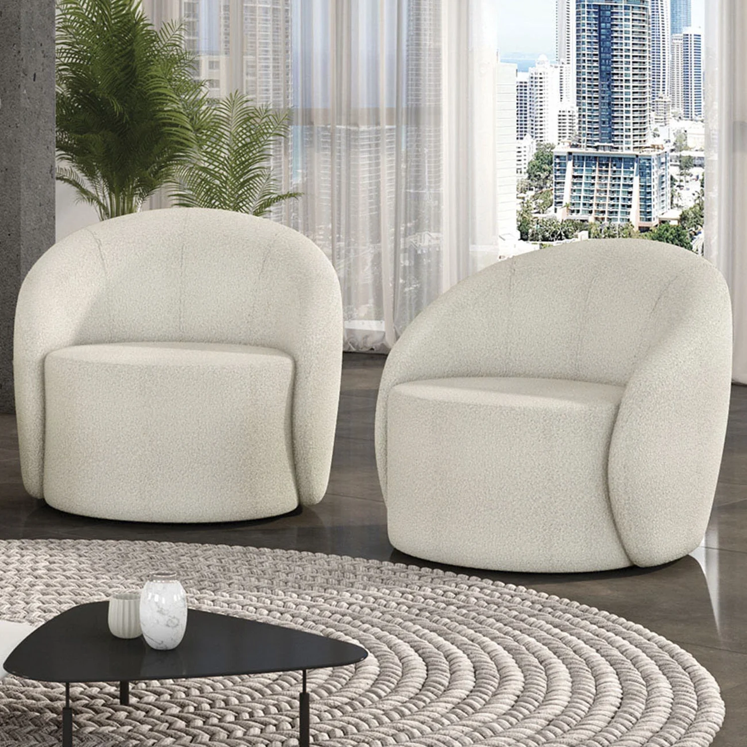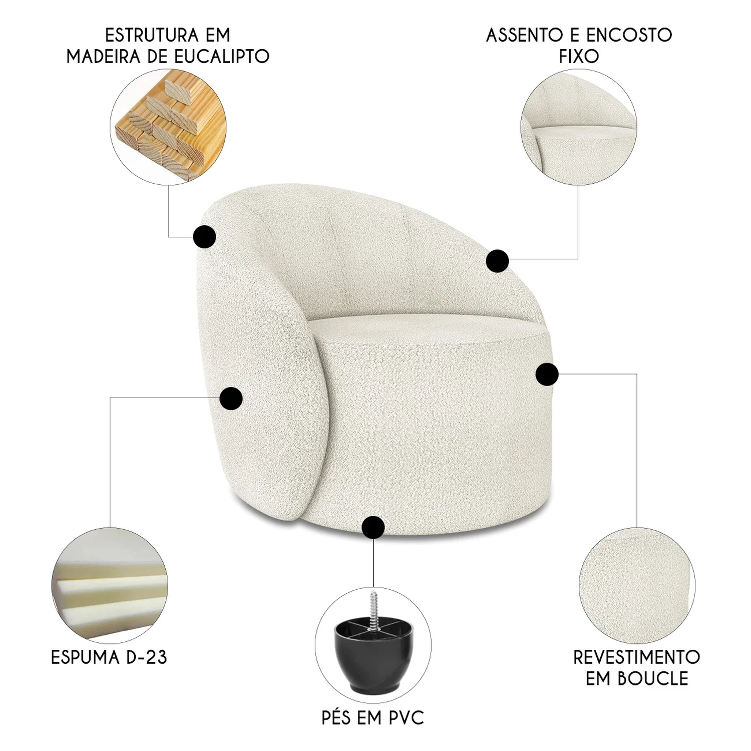 Poltrona Sala Decorativa Redonda Kit 2 Steve Boucle Off White I01 - Mpozenato