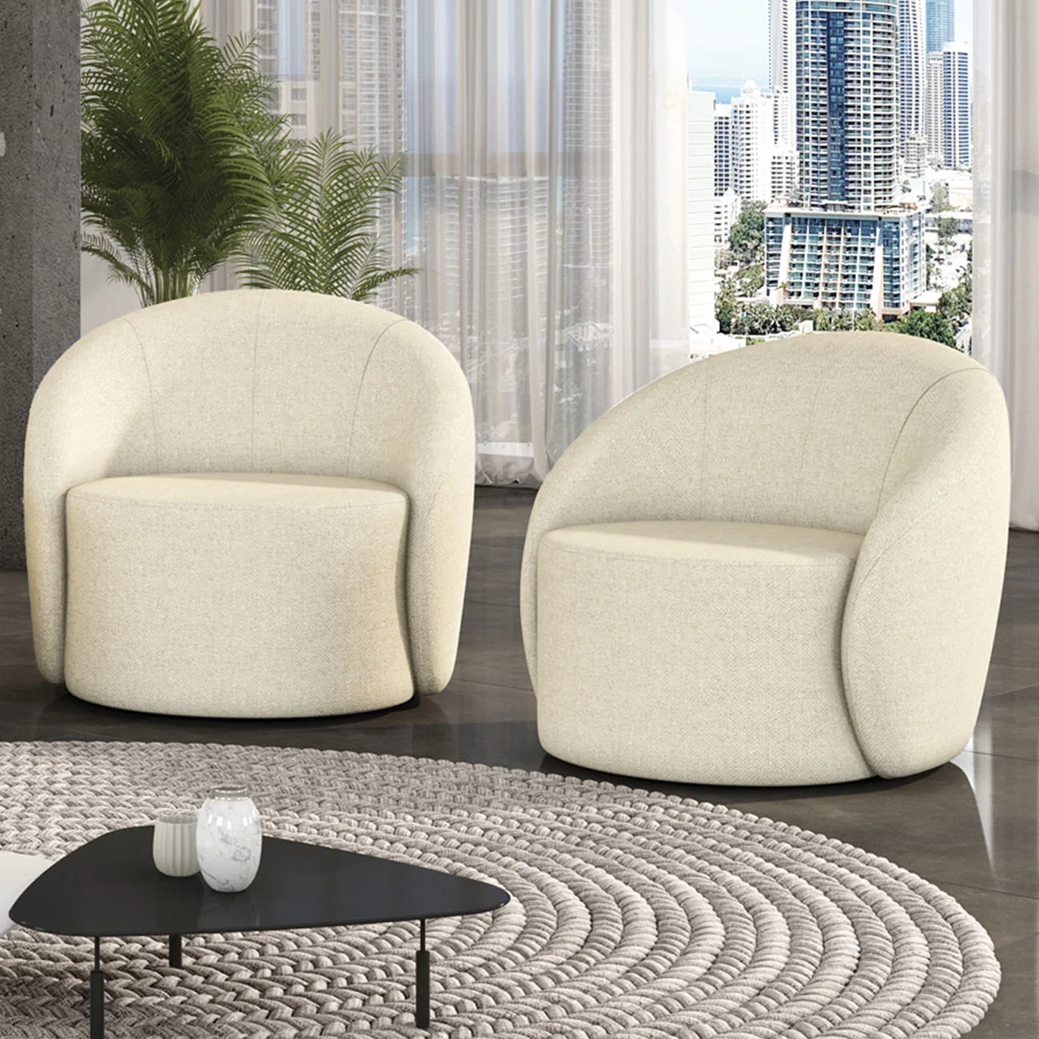 Poltrona Sala Decorativa Redonda Kit 2 Steve Linho Bege I01 - Mpozenato