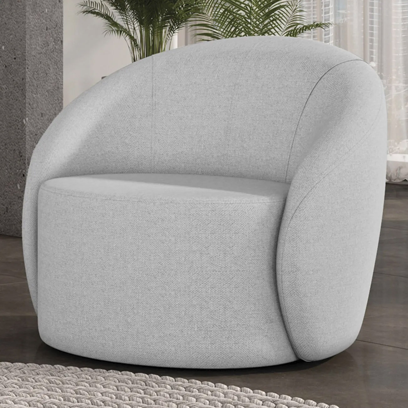Poltrona Sala Giratória Redonda 91cm Steve Linho Cinza I01 - Mpozenato