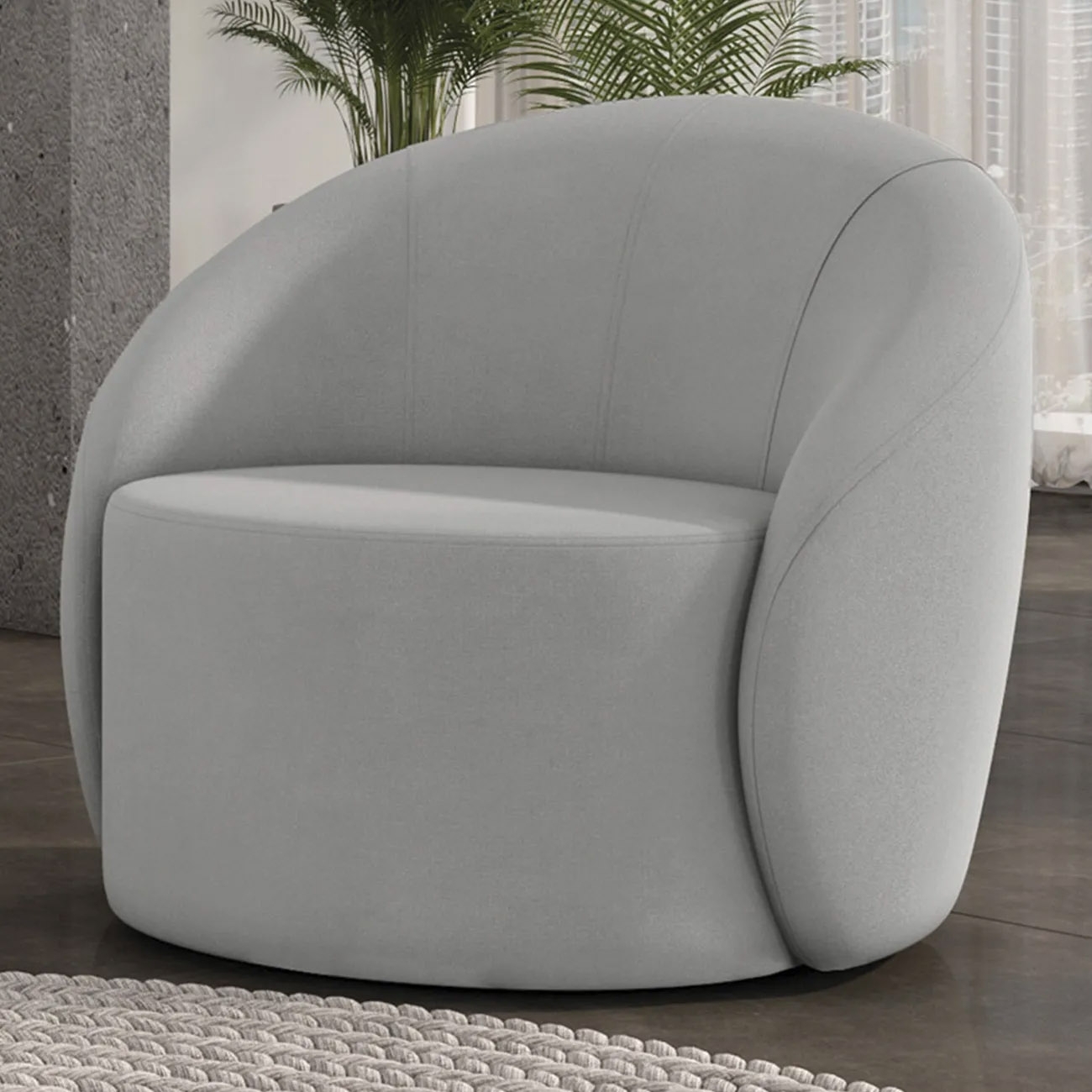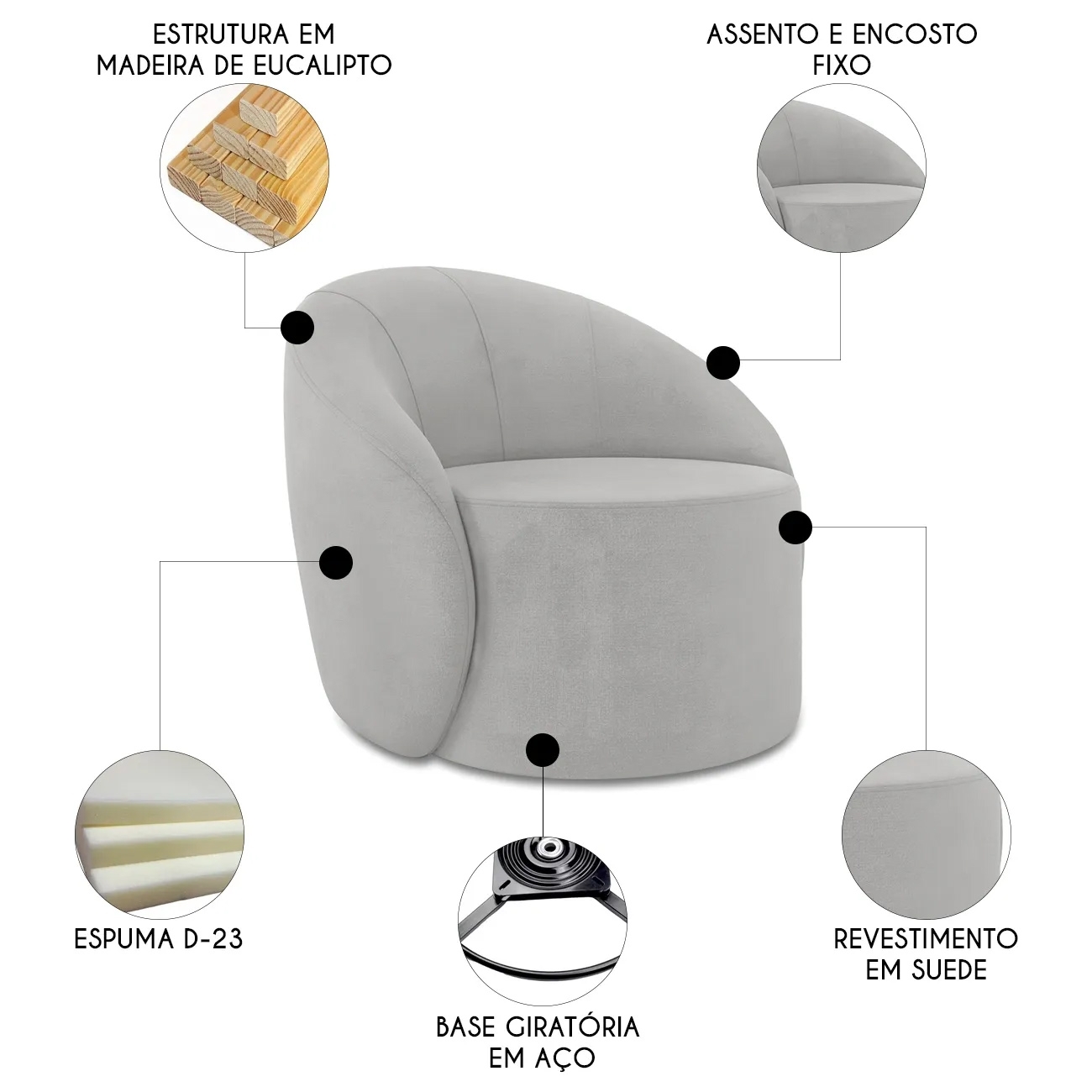 Poltrona Sala Giratória Redonda 91cm Steve Suede Cinza I01 - Mpozenato