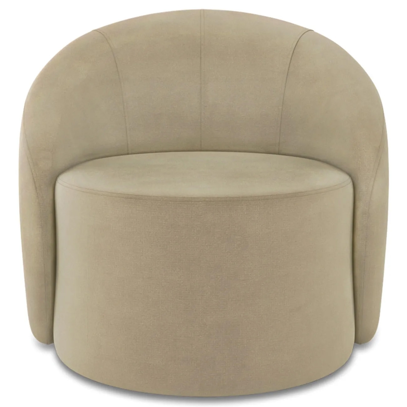 Seu design ergonômico valoriza as curvas suaves, incluindo encosto arredondado com costuras visíveis e base giratória com giro de 360 graus, trazendo movimento e elegância à Poltrona Decorativa.