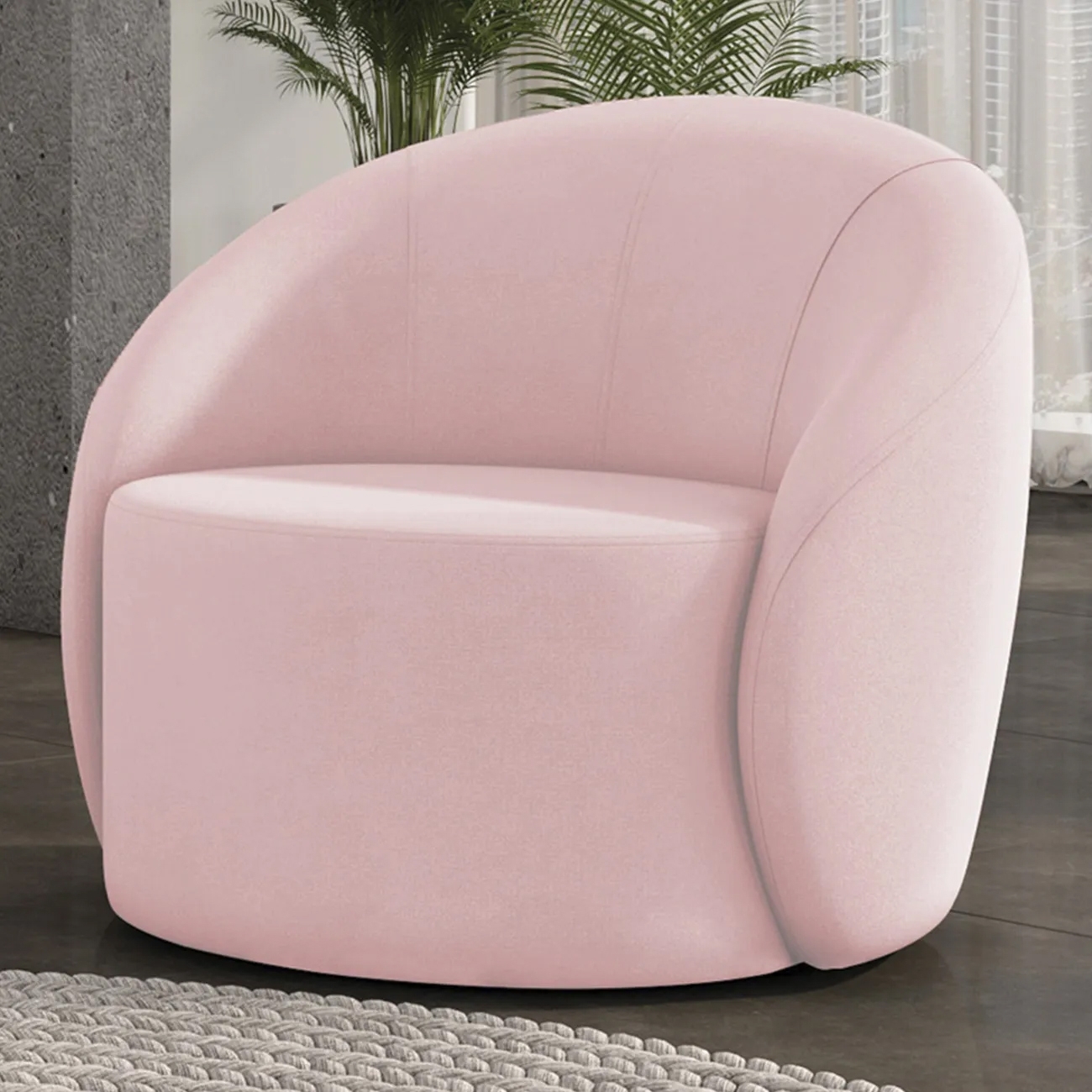 Poltrona Sala Giratória Redonda 91cm Steve Suede Rosa Bebê I01 - Mpozenato