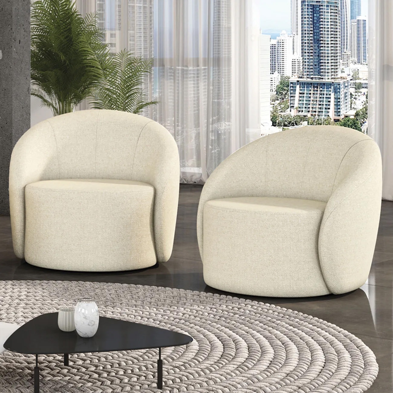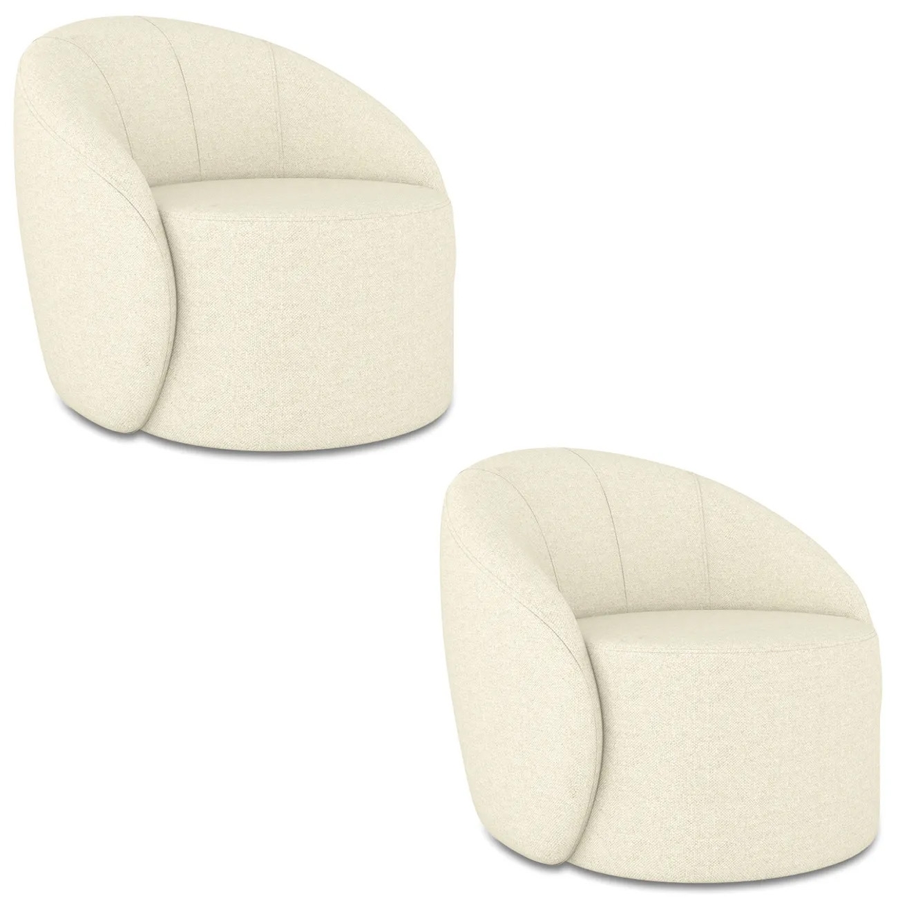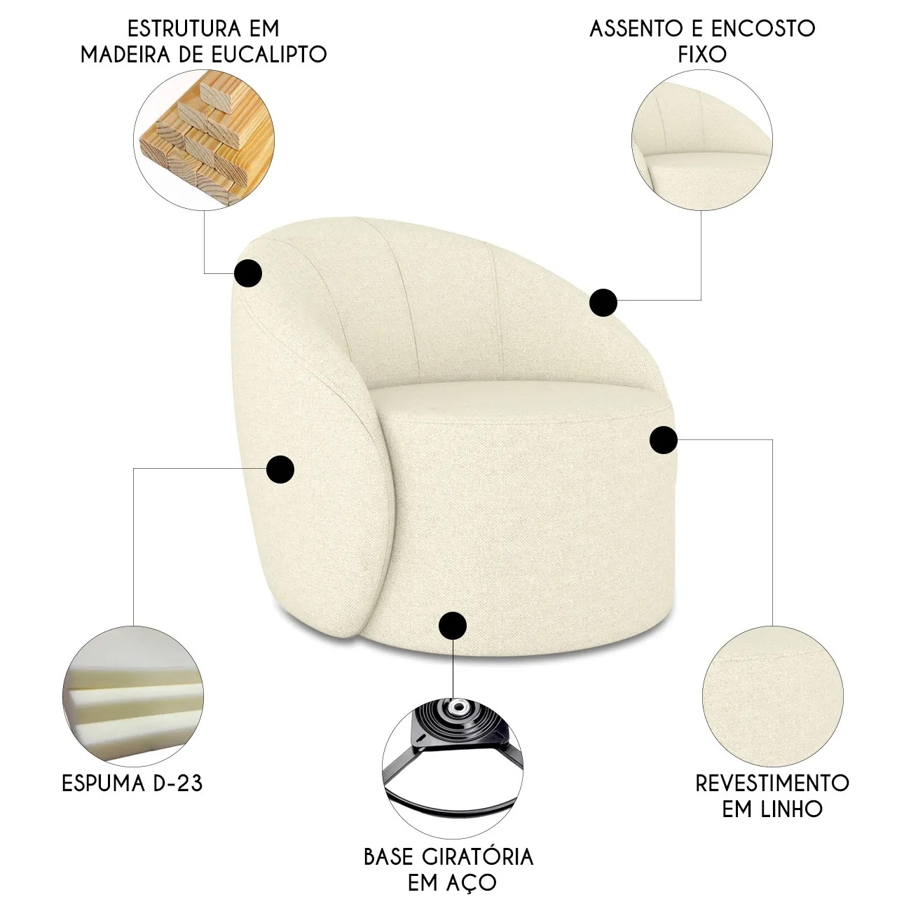 Poltrona Sala Giratória Redonda Kit 2 Steve Linho Bege I01 - Mpozenato