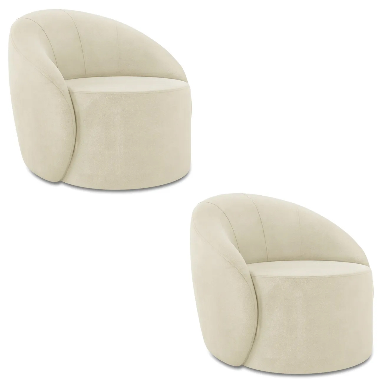 Poltrona Sala Giratória Redonda Kit 2 Steve Suede Bege I01 - Mpozenato