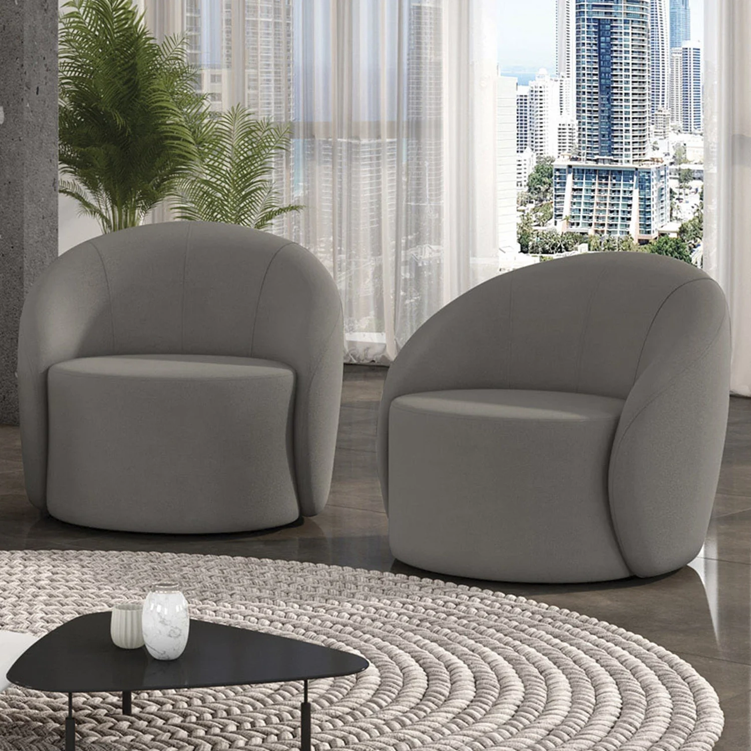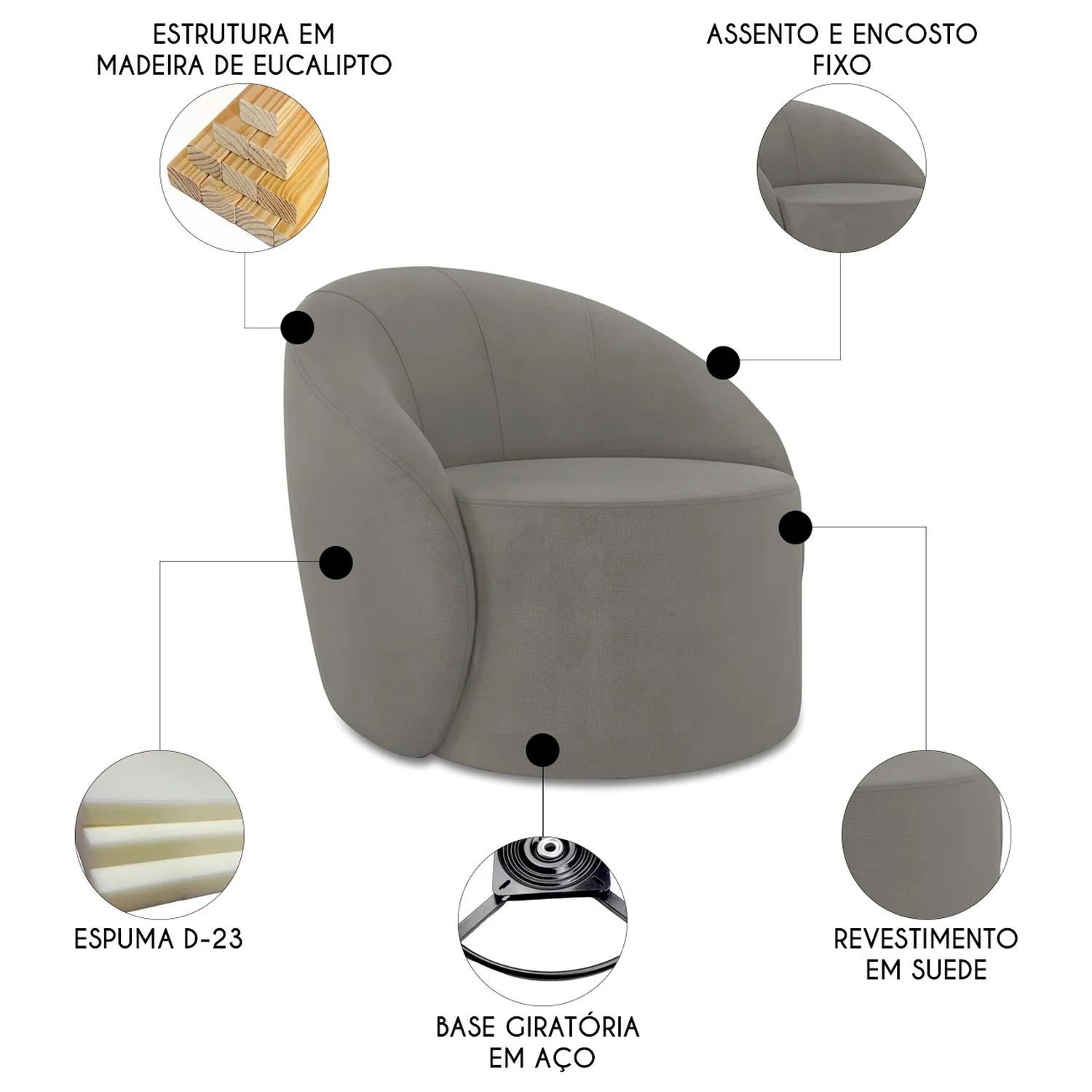 Poltrona Sala Giratória Redonda Kit 2 Steve Suede Grafite I01 - Mpozenato