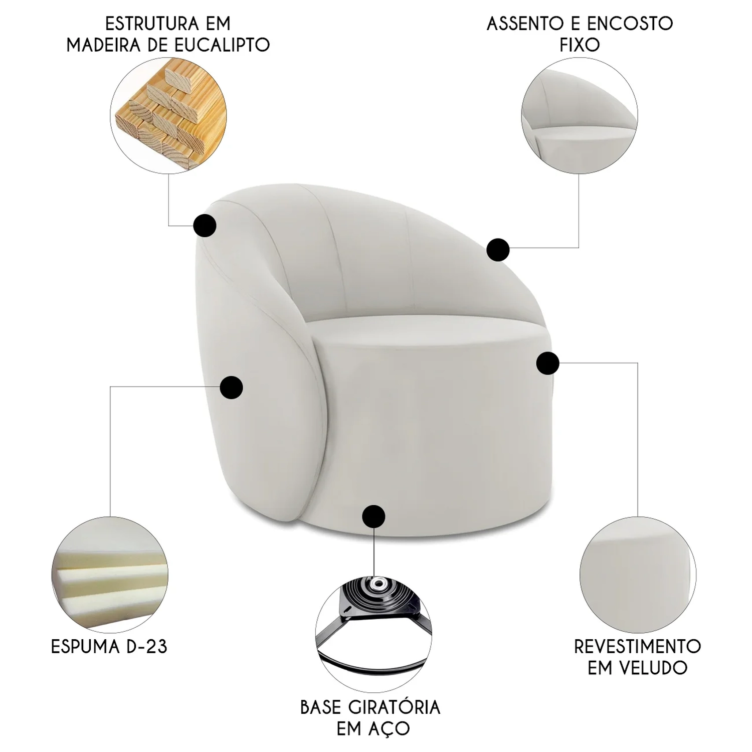 Tipo de Pés: Base Giratória.
