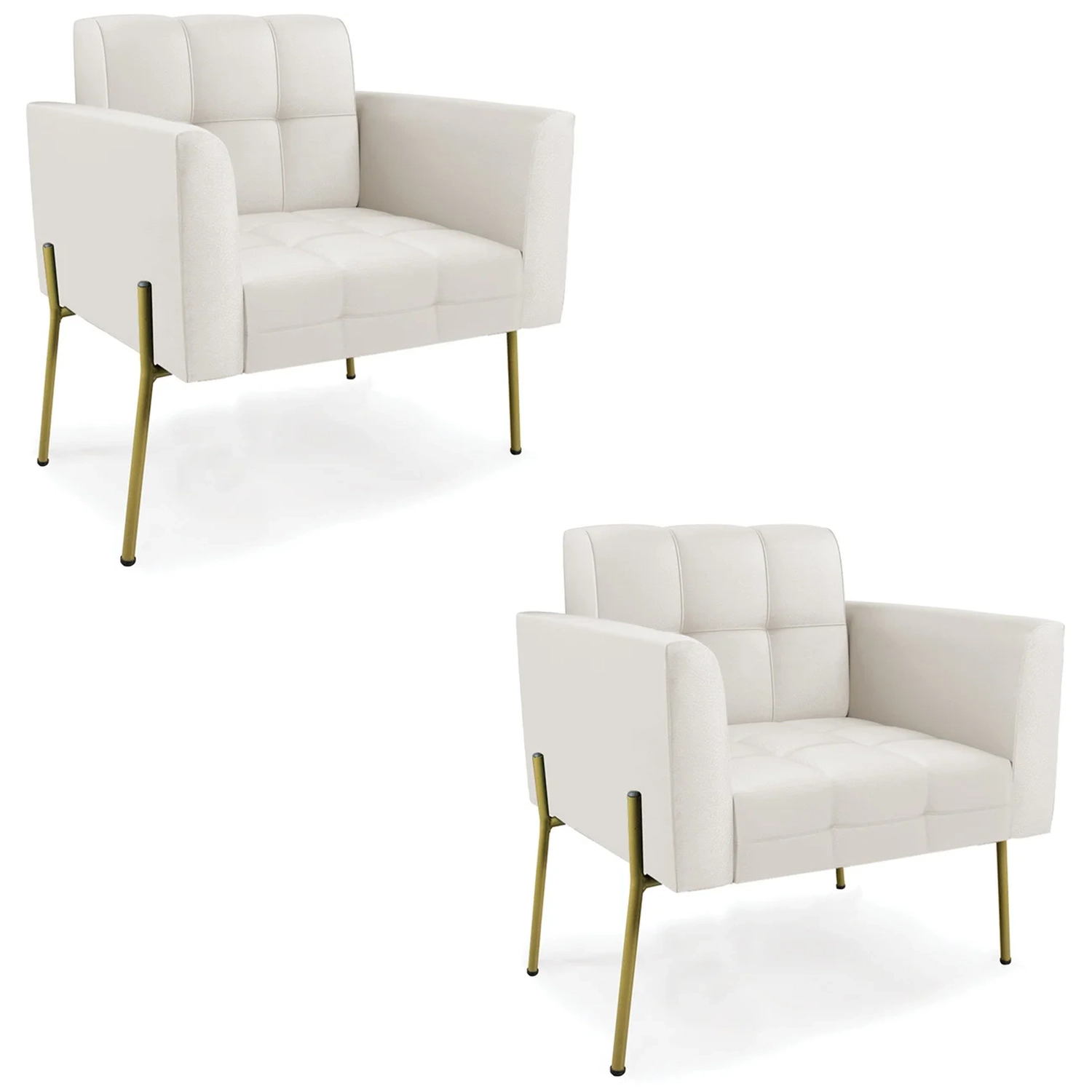 Que tal um Kit Poltrona que combine com a sua Sala De Estar, recepção ou seu quarto, que ofereça conforto e qualidade? Então você vai adorar a Poltrona Sala Pé Metal Dourado Kit 2 Ana Sintético Bege, da Ibiza!