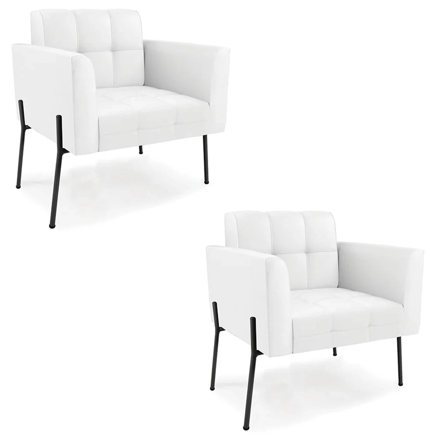 Você está procurando um Kit Poltrona que combine com a sua Sala De Estar, recepção ou seu quarto, que ofereça conforto e qualidade? Então você vai adorar a Poltrona Sala Pé Metal Preto Kit 2 Ana Sintético Branco, da Ibiza!
