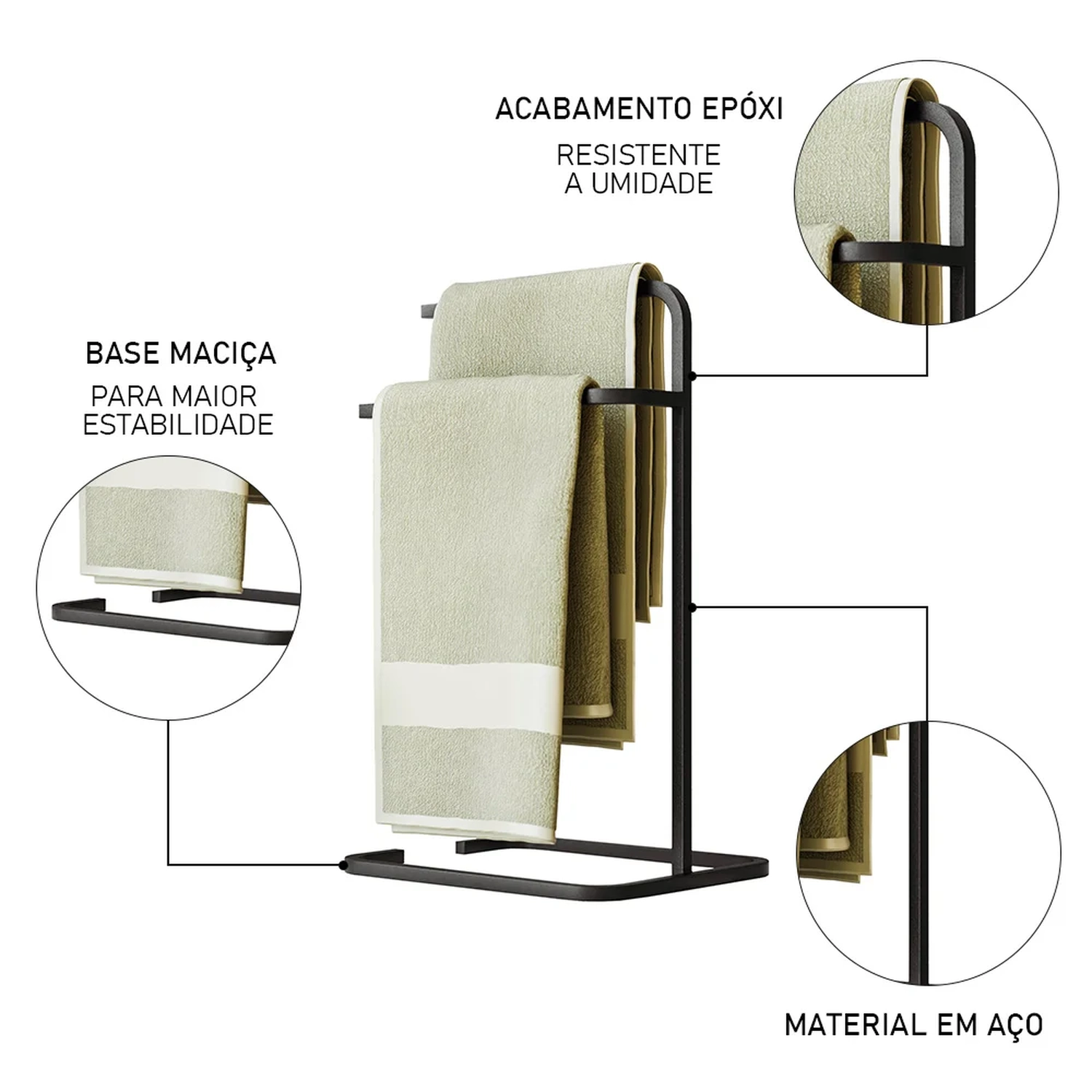 Temos a peça ideal para complementar seu banheiro, com qualidade e sofisticação, conheça o Porta Toalha de Rosto Para Pia Luxe em Aço D09 Preto, da Mpozenato. O Suporte para Toalha de Rosto é um produto prático e elegante para o seu banheiro. Ele tem capacidade para duas toalhas e é feito de aço resistente com pintura epóxi, que protege contra ferrugem e corrosão. Este suporte é ideal para deixar em cima da bancada do banheiro ou lavabo. Ele tem um design moderno e discreto que combina com qualquer decoração. O Porta toalhas é uma ótima opção para quem busca qualidade e durabilidade em um produto essencial para o dia a dia. Adquira já o seu e tenha a garantia de estar levando um produto de qualidade e bom gosto para o seu banheiro!