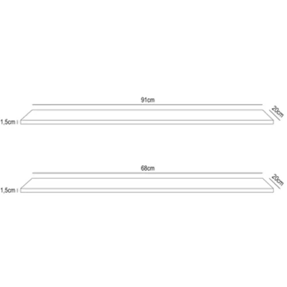 Prateleira 68: 68 x 1,5 x 20 cm.