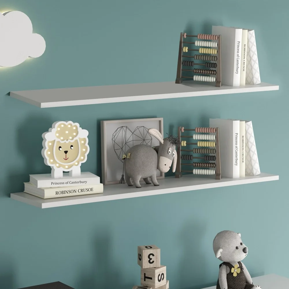 O kit de Prateleiras Infantil é ideal para organizar objetos, desde livros, brinquedos até bichos de pelúcia. Um design com linhas mais retas e modelo versátil, atual e despojado, pode ser usado para quartos de menino e menina com um estilo mais moderno e divertido. A Prateleira de Madeira é produzida 100% MDP, e um acabamento em melamina BP, que protege contra riscos e manchas. A prateleira tem 15mm de espessura. A fita de borda confere um acabamento refinado e evita que as bordas se descolem ou lasquem com facilidade. E fica a sua escolha instalar o kit de prateleiras junto ou separar, deixando alinhadas ou alternadas. São várias formas de usar, as prateleiras são modernas e descontraídas ideal para todos os ambientes. Aah! E o melhor de tudo, cada prateleira acompanha 2 Suportes Invisíveis em aço já com as buchas 8mm, que ficam escondidos atrás da prateleira e cria um efeito flutuante, eles permitem uma instalação fácil e segura, e sem furos ou parafusos aparentes.