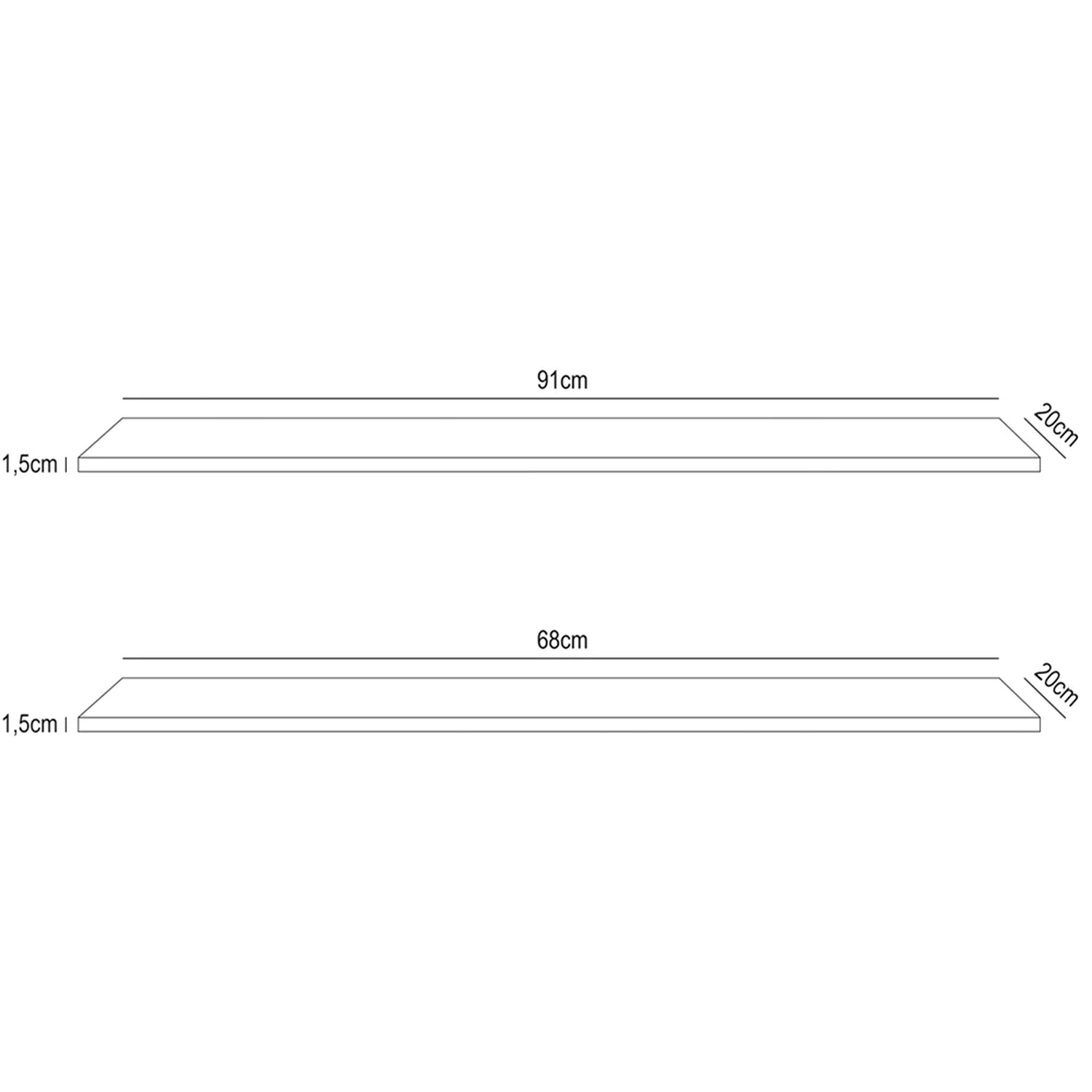 Prateleira 68: 68 x 1,5 x 20 cm.