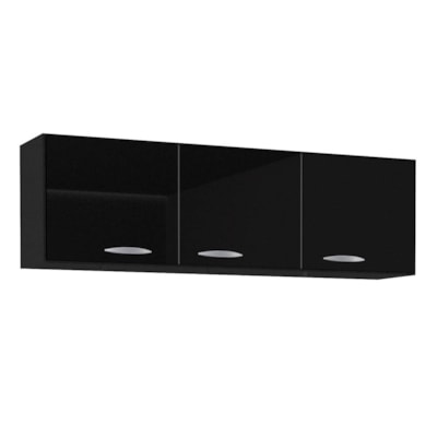 Armário Aéreo de Cozinha 150cm 3 Portas Argélia Preto - Lumil