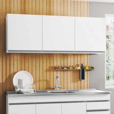Armário Aéreo de Cozinha 150cm 3 Portas Argélia Branco - Lumil