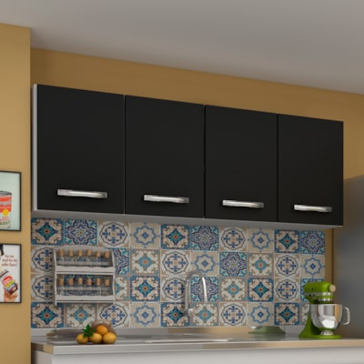 Armário de Cozinha Aéreo 160cm 4 Portas Nevada Preto - Lumil