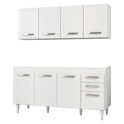 Armário Aéreo Panamá e Balcão Gabinete Áustria 160cm Branco - Lumil Móveis